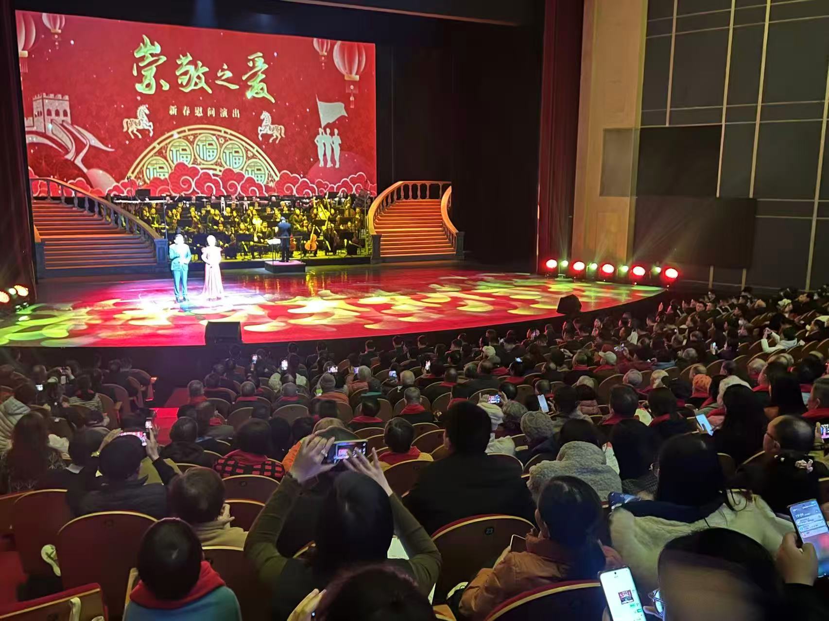 2月3日晚,近1500位特殊嘉宾相聚在灯火璀璨、暖意融融的上海大剧院大剧场,2026“崇敬之爱”新春慰问演出如约而至、浓情开演。这些嘉宾为驻沪部队官兵代表、离退休在沪的部队老首长及其家属代表、最美退役军人代表、本市各区优抚对象代表、以及各界拥军优属志愿者代表,他们受邀观看演出,在艺术盛宴中共叙申城军民鱼水深情,共迎马年新春佳节。