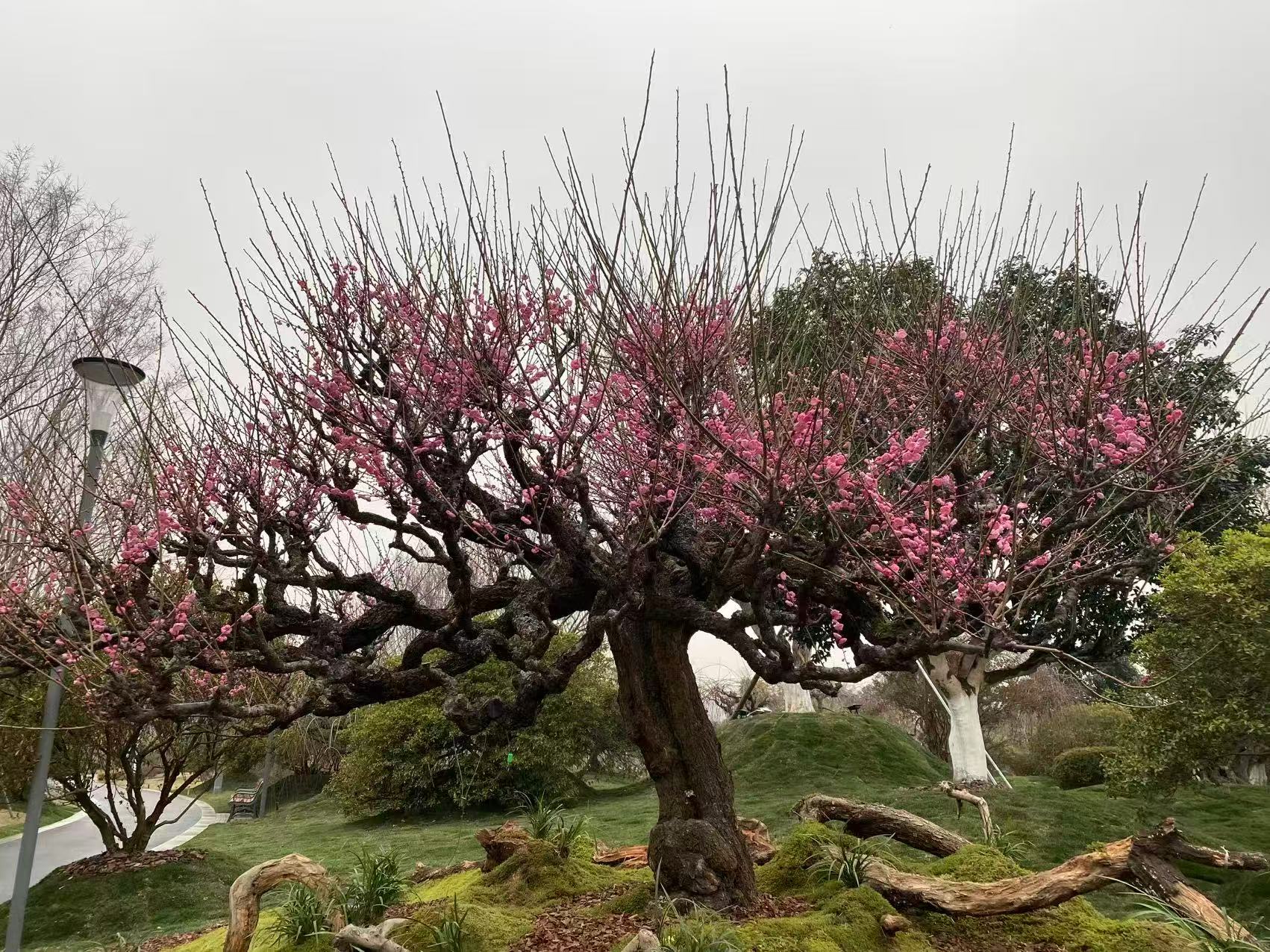 展览将持续至5月20日,首阶段以空前规模的垂枝梅为主题,运用中国园林造景手法,突破传统赏梅模式,创造了世博文化公园多个“之最”。包括200多棵镇园级垂枝梅首次大规模集结,植株高达三层楼的“垂枝梅王”,冠幅达8米的巨型植株等。目前,展区部分梅花已进入观赏期。