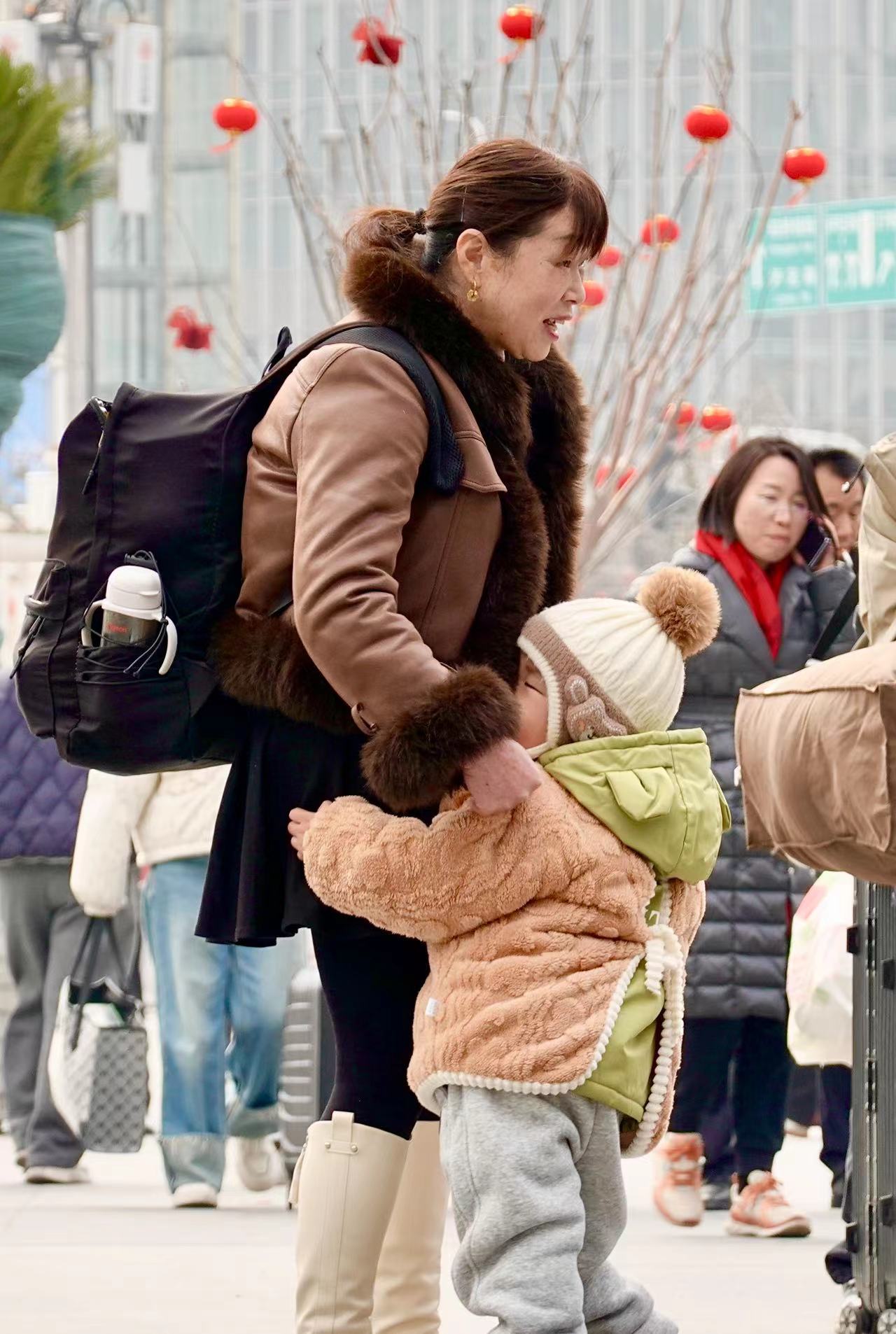 离开春节越来越近,不少旅客都带着孩子早早踏上返乡路。摄影 贡俊祺