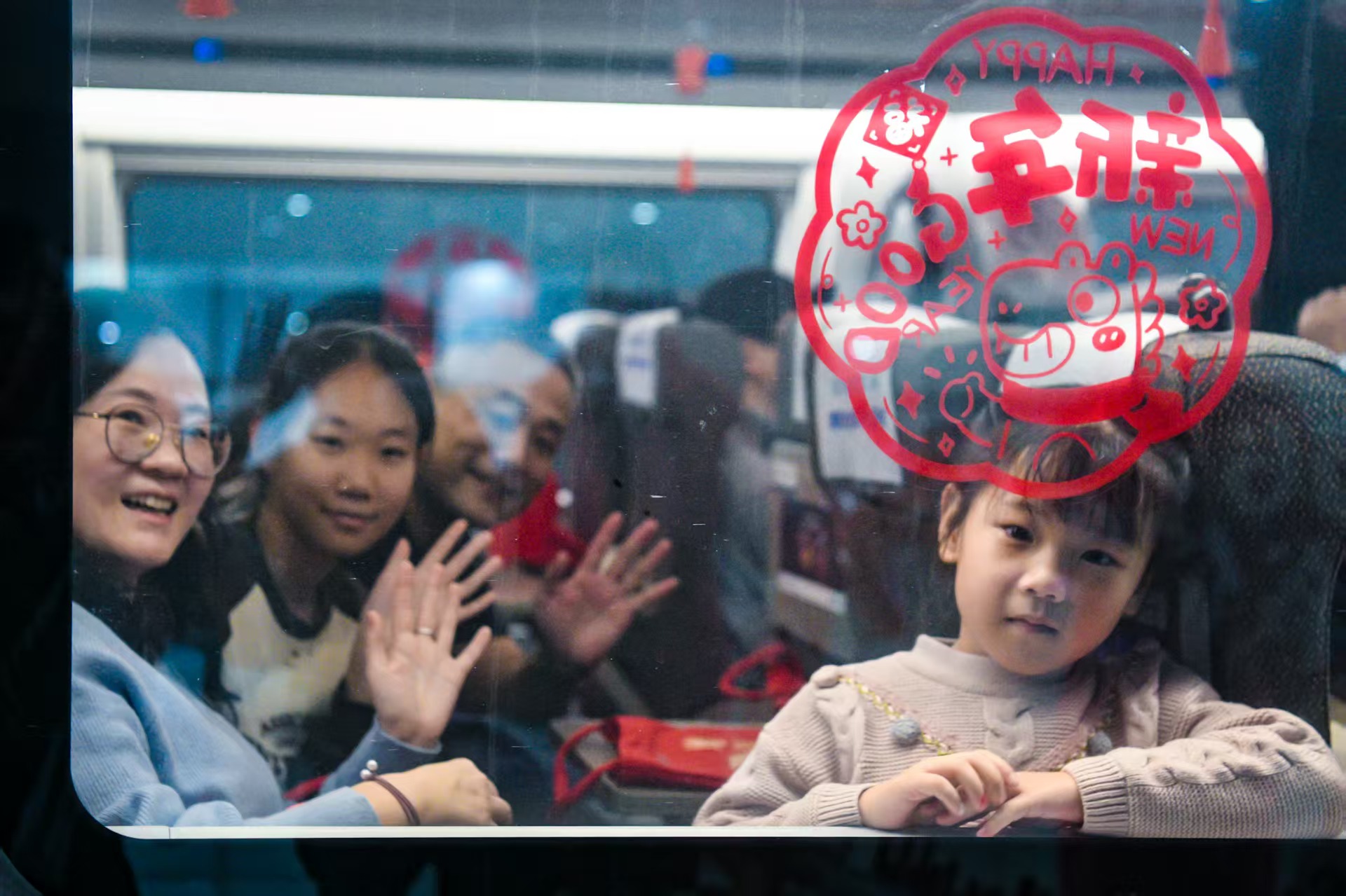 头图为2026年春运启幕,旅客正在贴满窗花的列车车厢内挥手告别,正式踏上返乡路。摄影 颜筱依