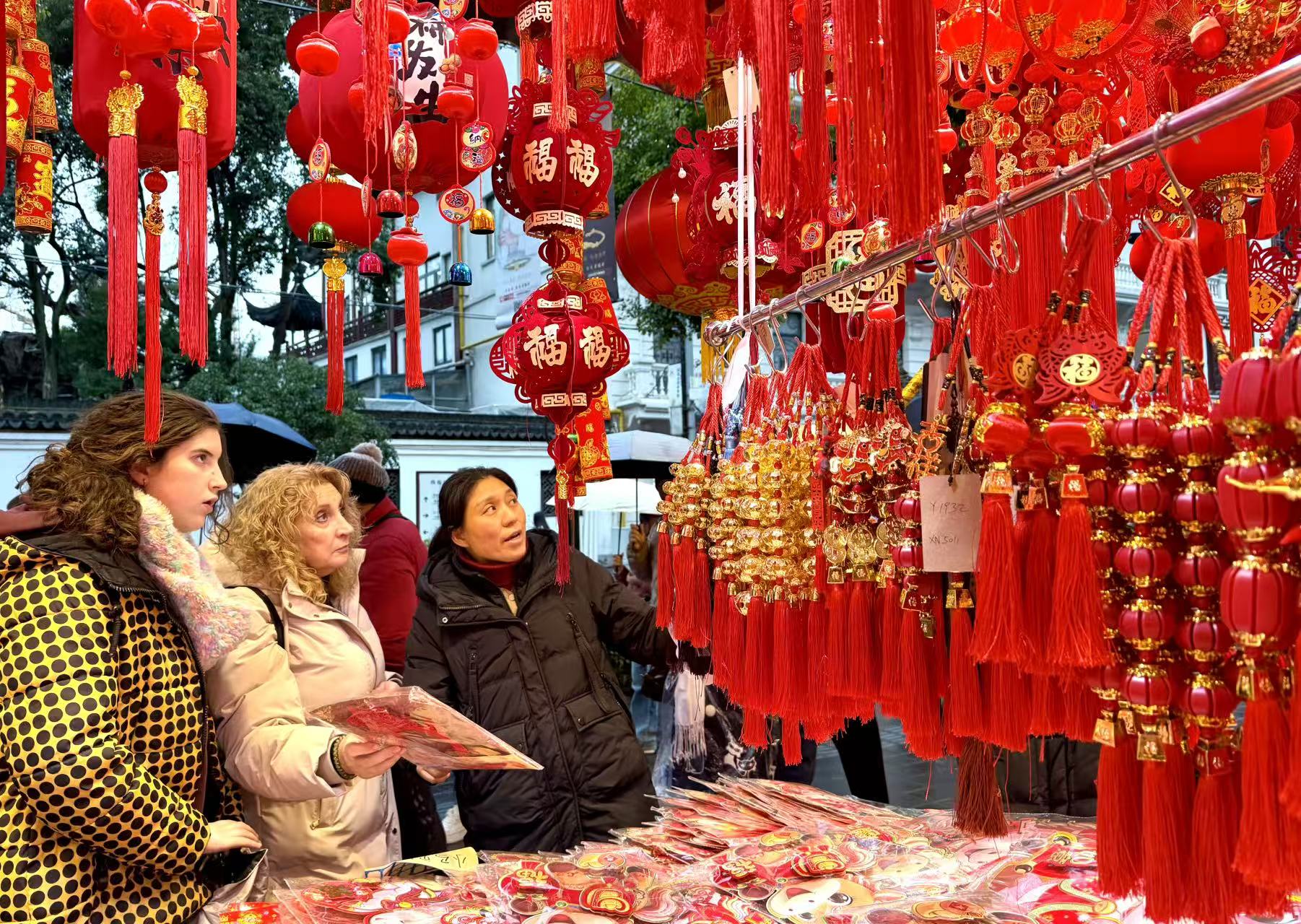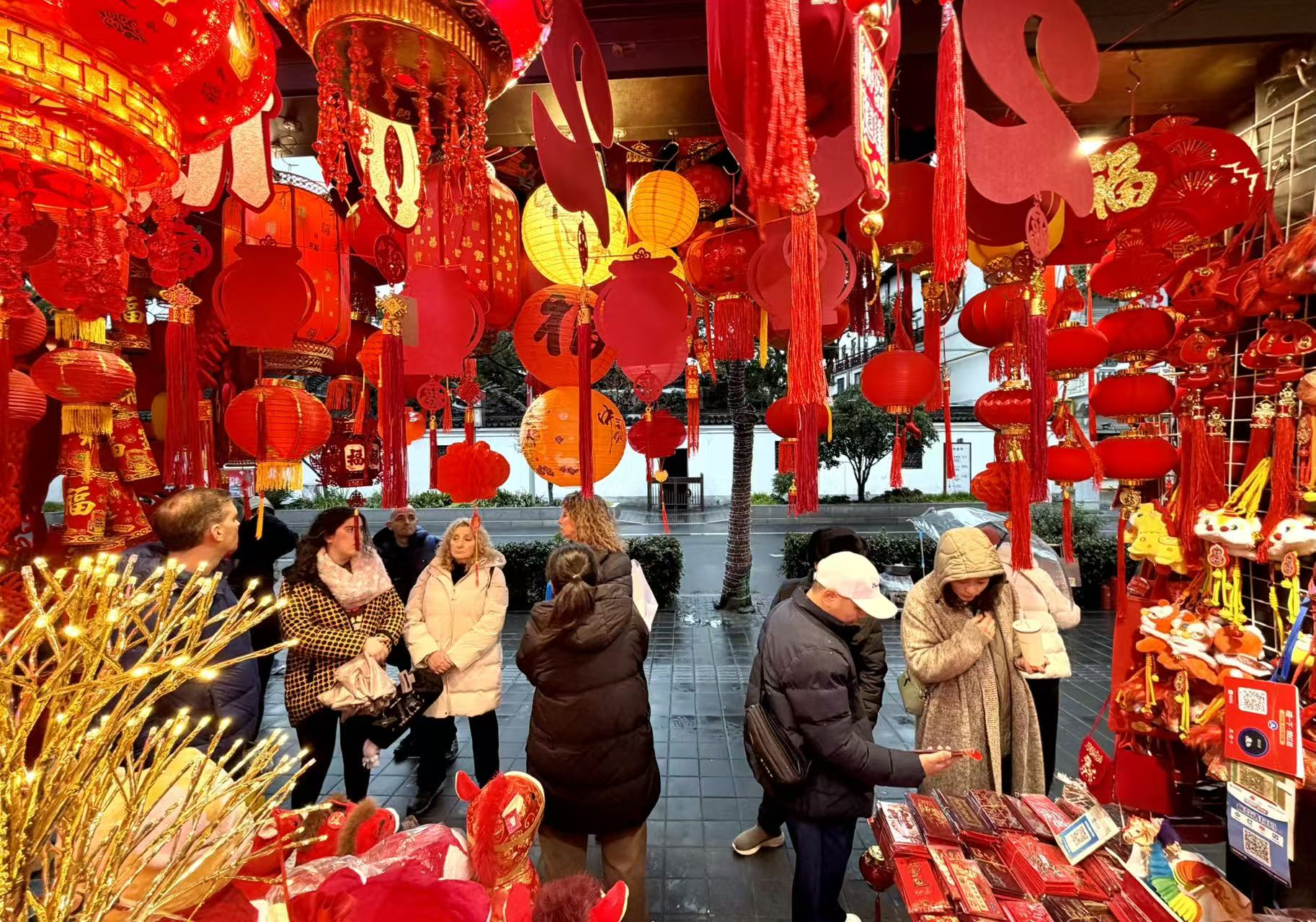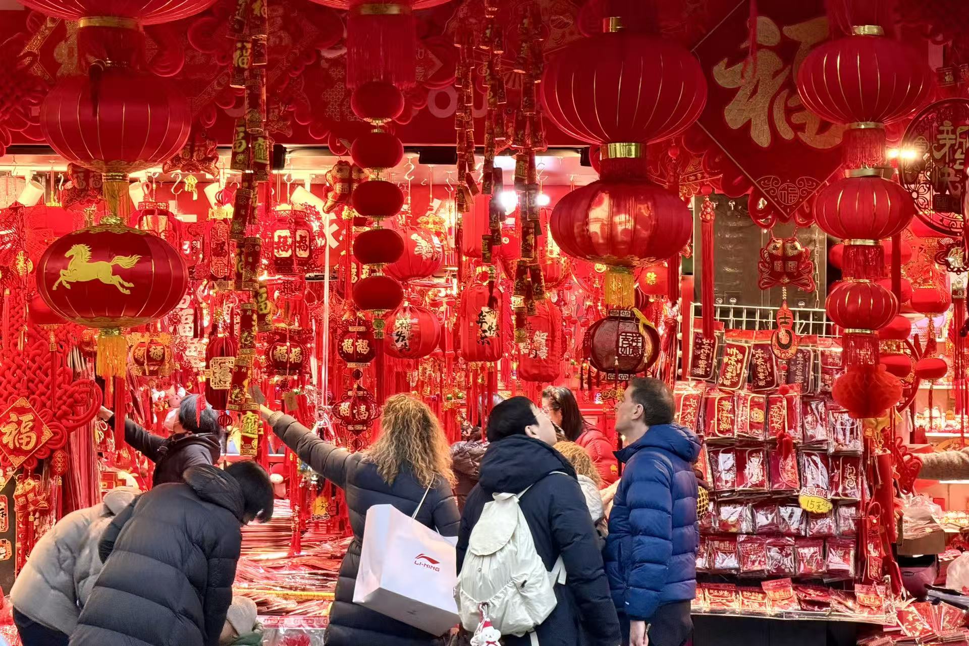 随着2026马年新春临近,上海年货市场迎来购销热潮。豫园商城、各大商超的年味商品专区被红灯笼、中国结、马元素对联装点得红火喜庆,传统年俗好物不仅成为沪上市民置办年货的首选,更吸引不少外国友人驻足选购。