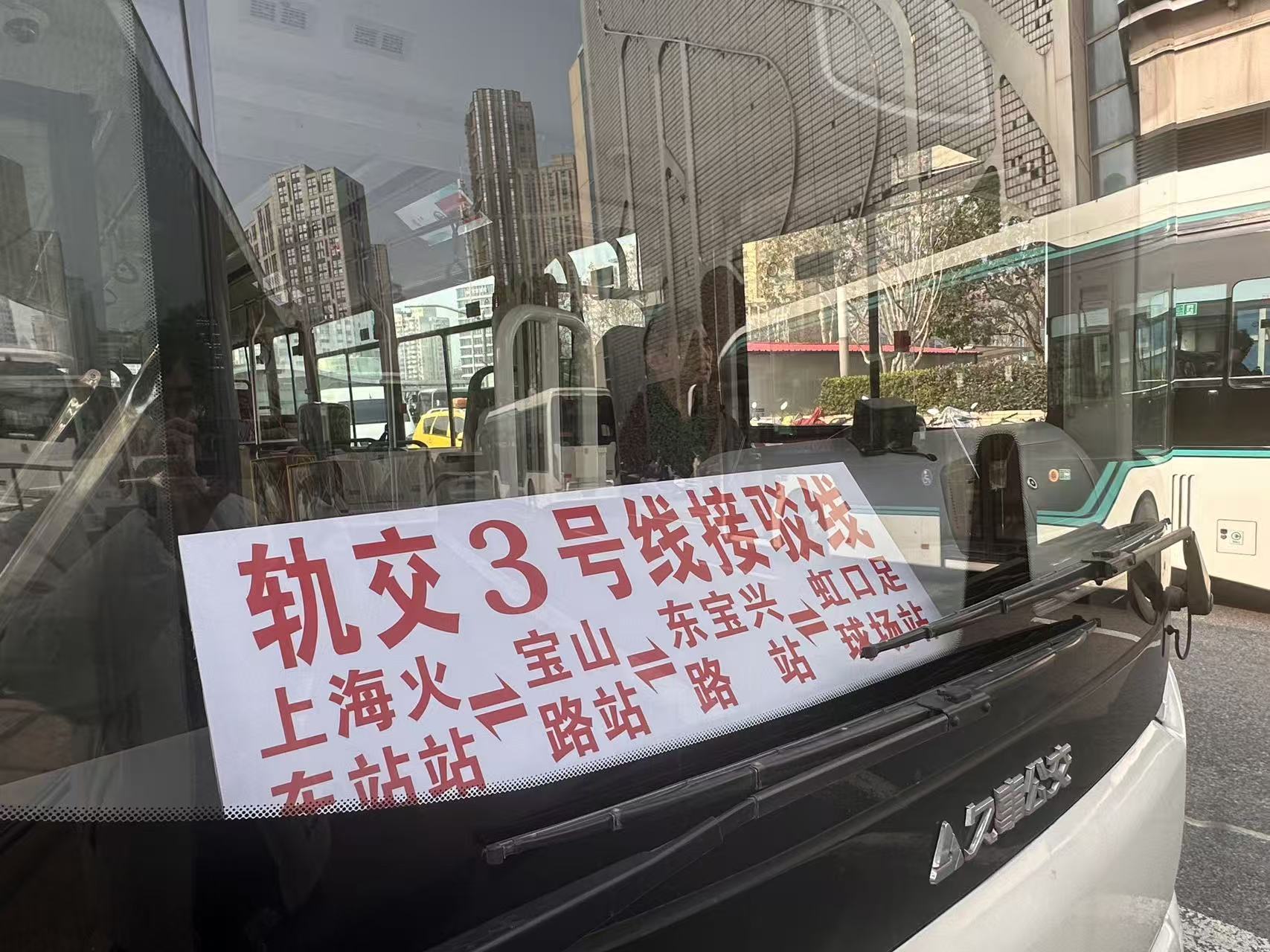 轨交3号线接驳线运营时间为:上海火车站→虹口足球场,5:30—23:20;虹口足球场→上海火车站,5:50—23:30,发车间隔为5至15分钟,免费乘坐。