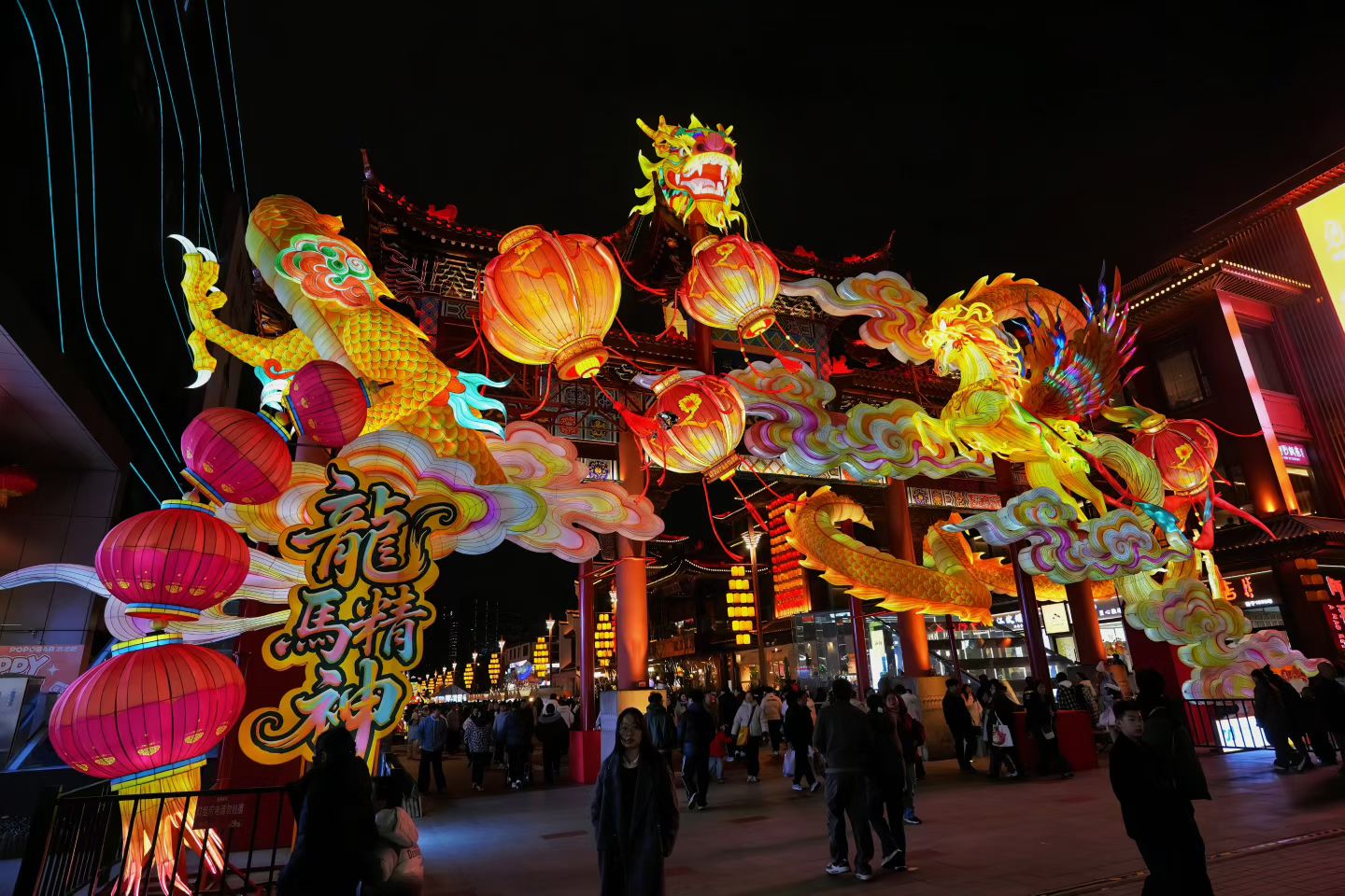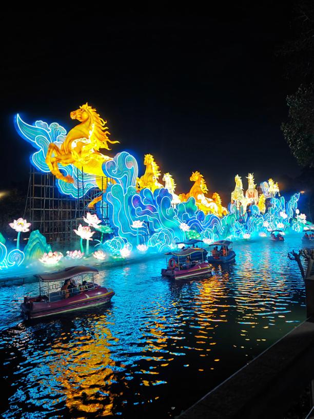 灯火,是新春最动人的语言,串联起南北共通的年味。从香港维多利亚港的烟花秀,到山东水浒好汉城内的非遗打铁花,在烟火升腾间,年味四溢。从岭南水乡到草原钢城,一盏盏花灯、一串串灯笼,点亮了街巷。广州越秀公园岸边,一组奔马花灯踏浪而行;北京胡同的红墙灰瓦间,红灯笼高高挂起,暖意融融;镇江西津渡的青砖古巷上空的鱼形灯饰、宁波城隍庙的“龙马精神”主题灯组,将吉祥寓意镌刻其中;鲁西南的古树枝头,万千福字灯笼迎风摇曳,藏着家家户户对新年的美好期许。