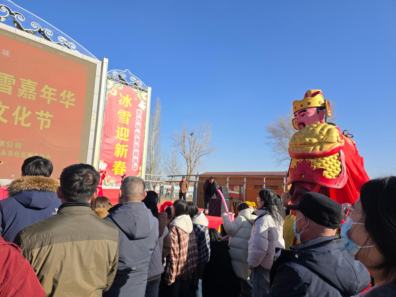 内蒙古包头赛汗塔拉生态园举办迎春民俗活动。舞台上,演员身着盛装演绎蒙古舞;舞台下,踩着高跷的财神与市民近距离互动送福。劳动报记者于玘珺摄影