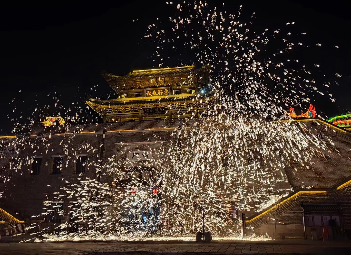位于山东菏泽的水浒好汉城内正在进行打铁花表演。一场场滚烫的非遗烟火,既是千年匠魂的传承,亦是马年新春最炽热的祈愿。劳动报记者马亚会摄影