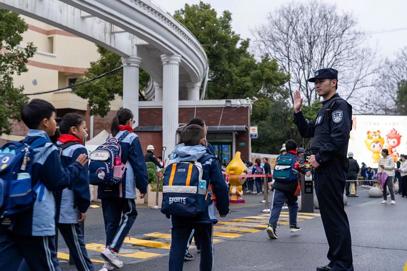 闵行公安交管启动护校模式守护孩子们。闵行警方供图