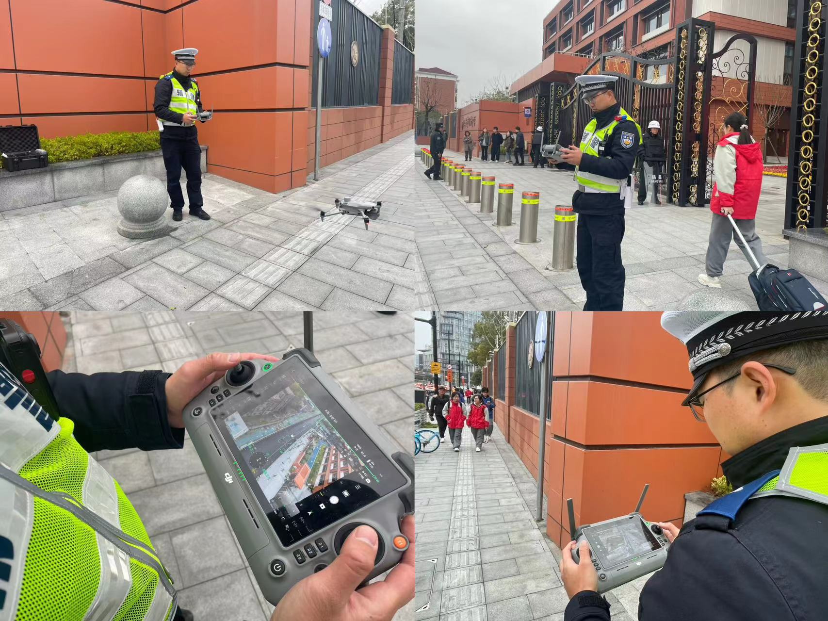 头图为徐汇交管部门使用无人机展开空中护校。劳动报记者 包璐影 摄影