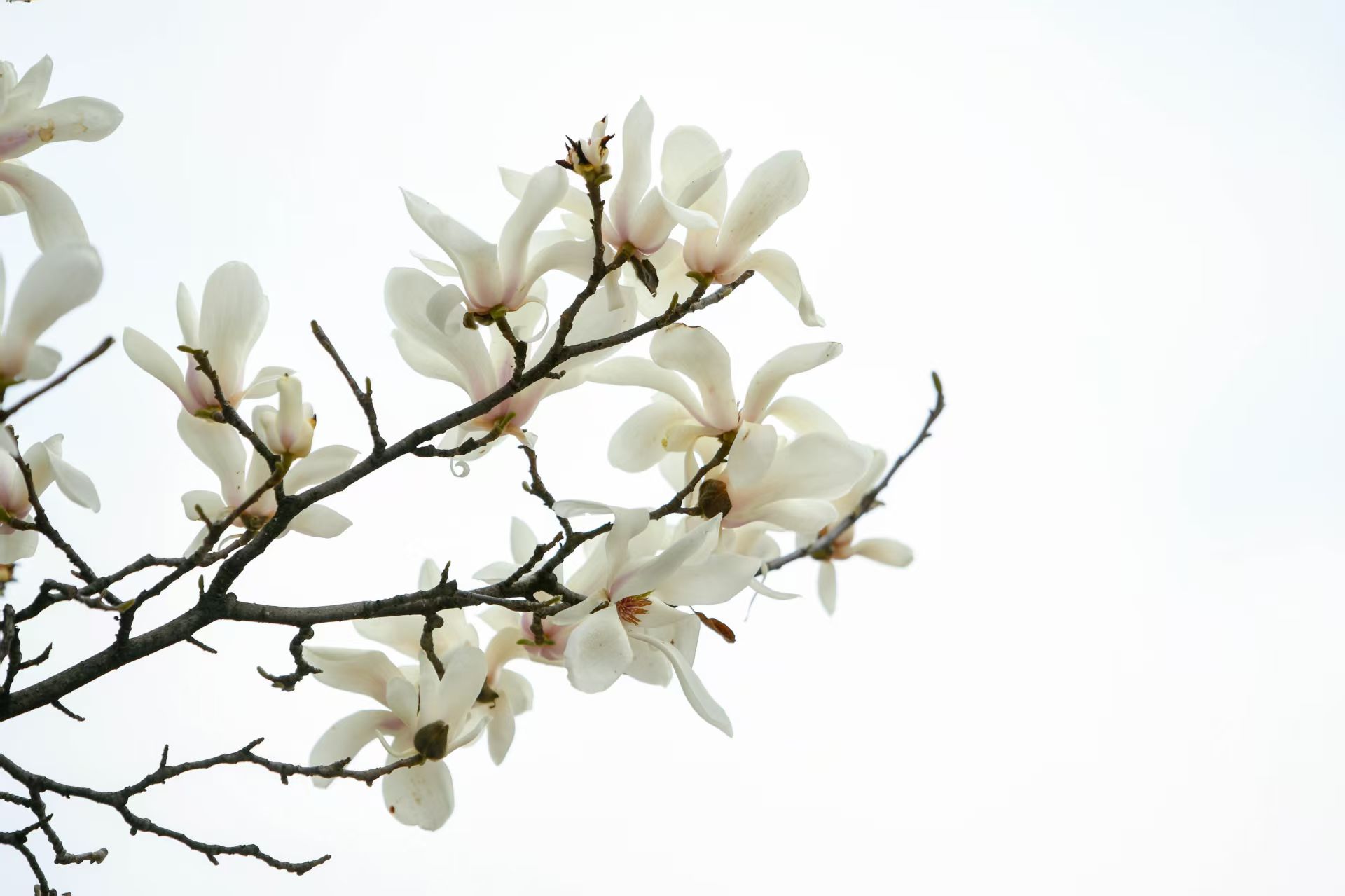 近期,申城的白玉兰树,洁白的花朵已挂上枝头。