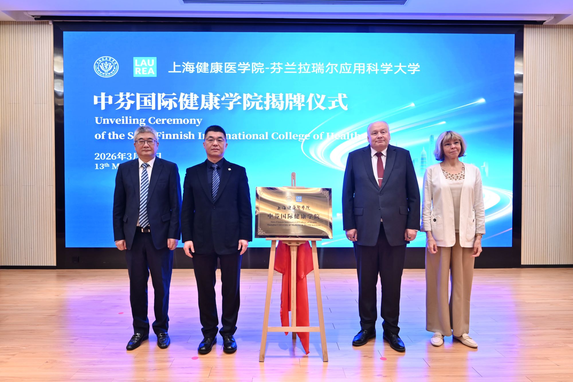 3月13日,上海健康医学院中芬国际健康学院揭牌仪式在上海健康医学院举行。中芬学院是由上海健康医学院与芬兰拉瑞尔应用科学大学(Laurea University of Applied Sciences)合作举办的中外合作办学机构。