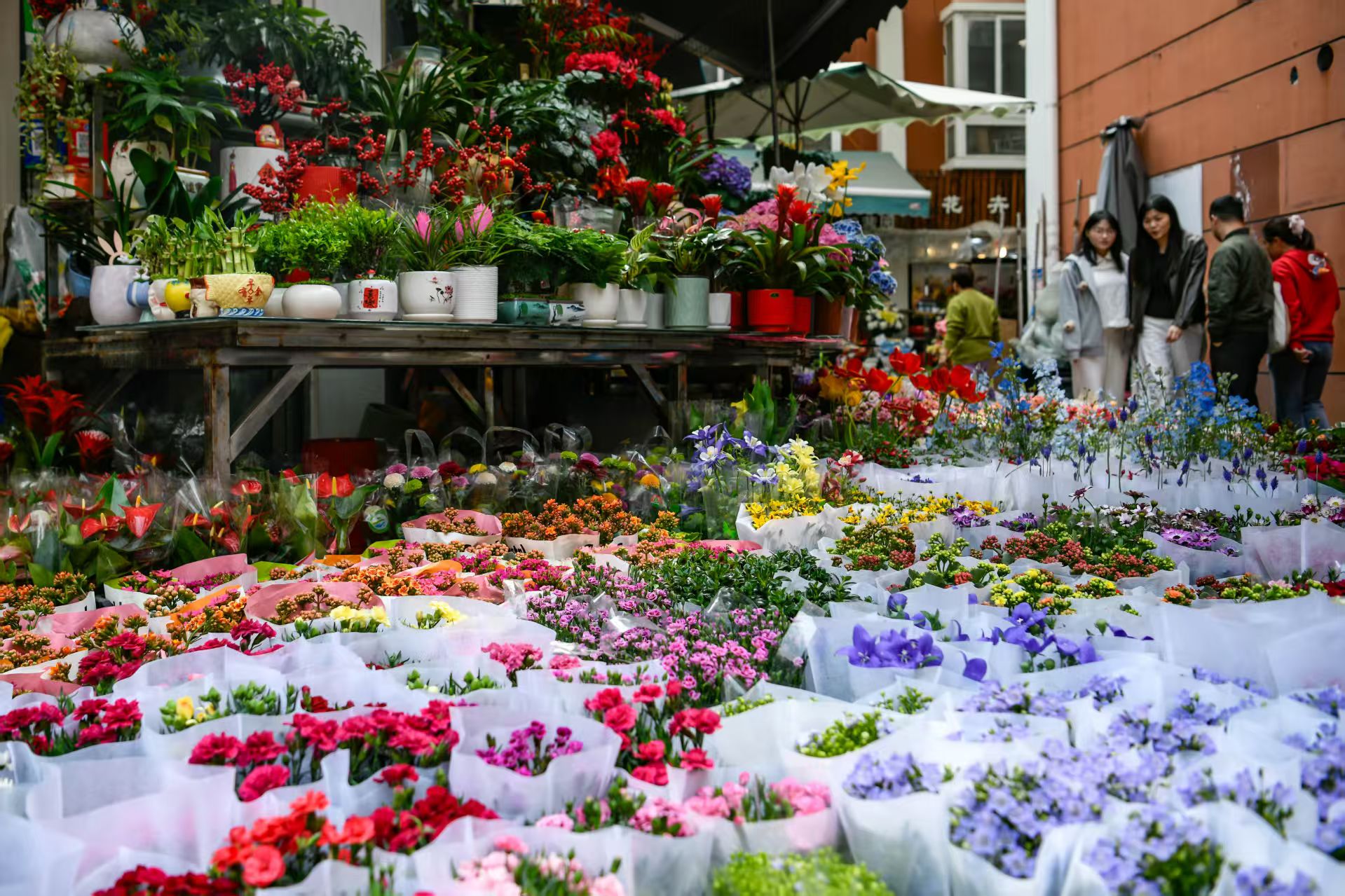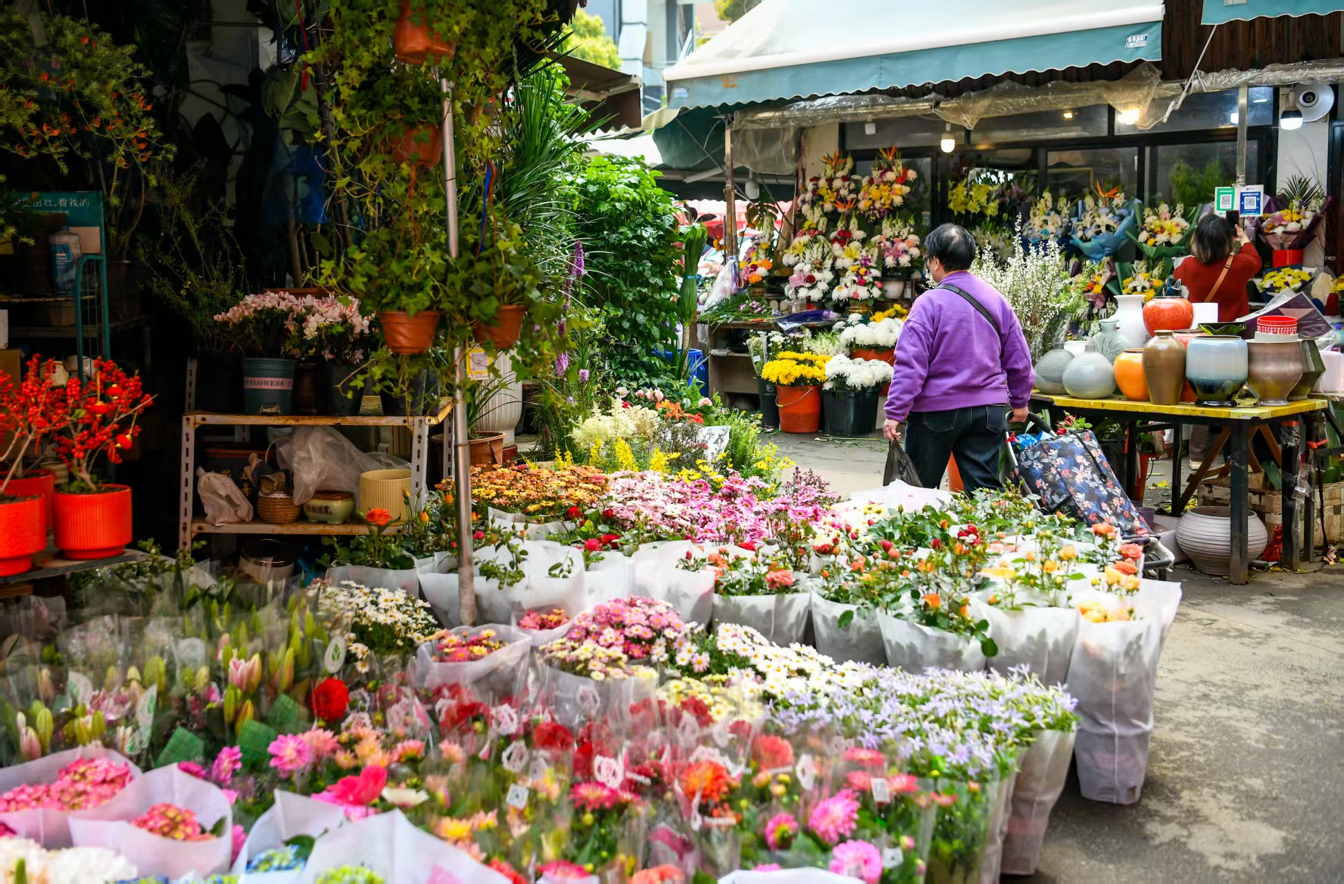 美丽鲜花吸引人选购。劳动报记者颜筱依摄影
