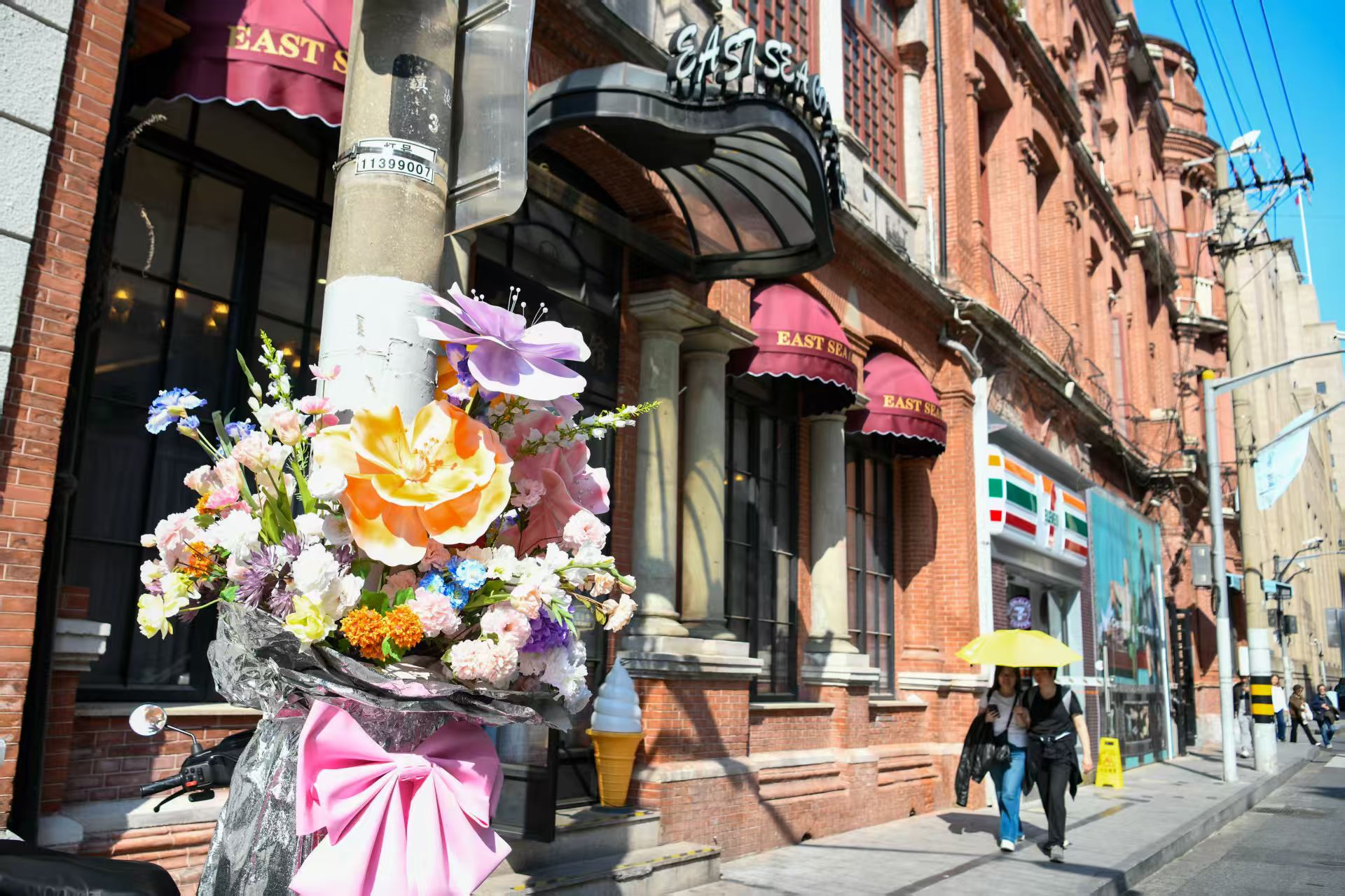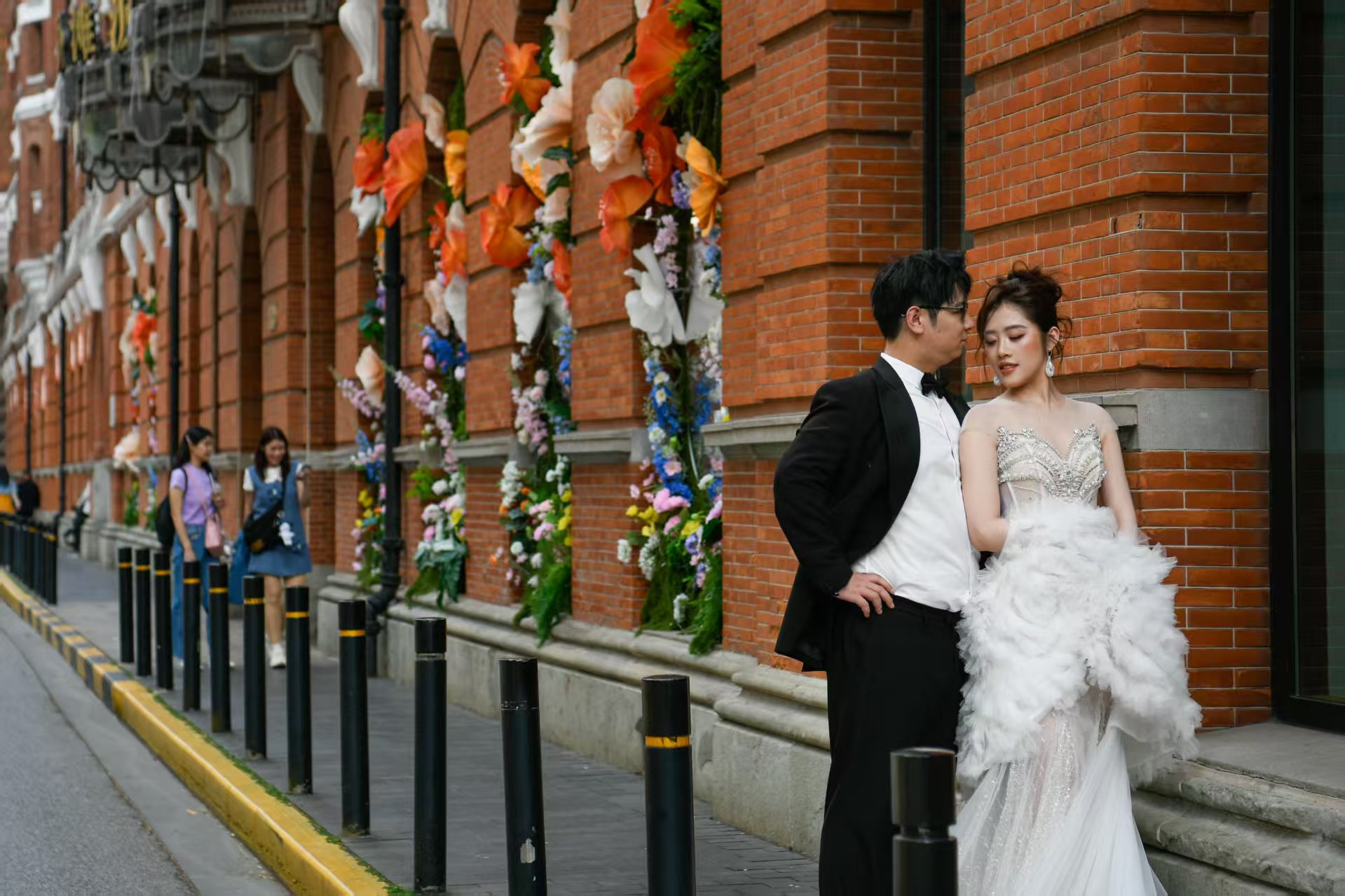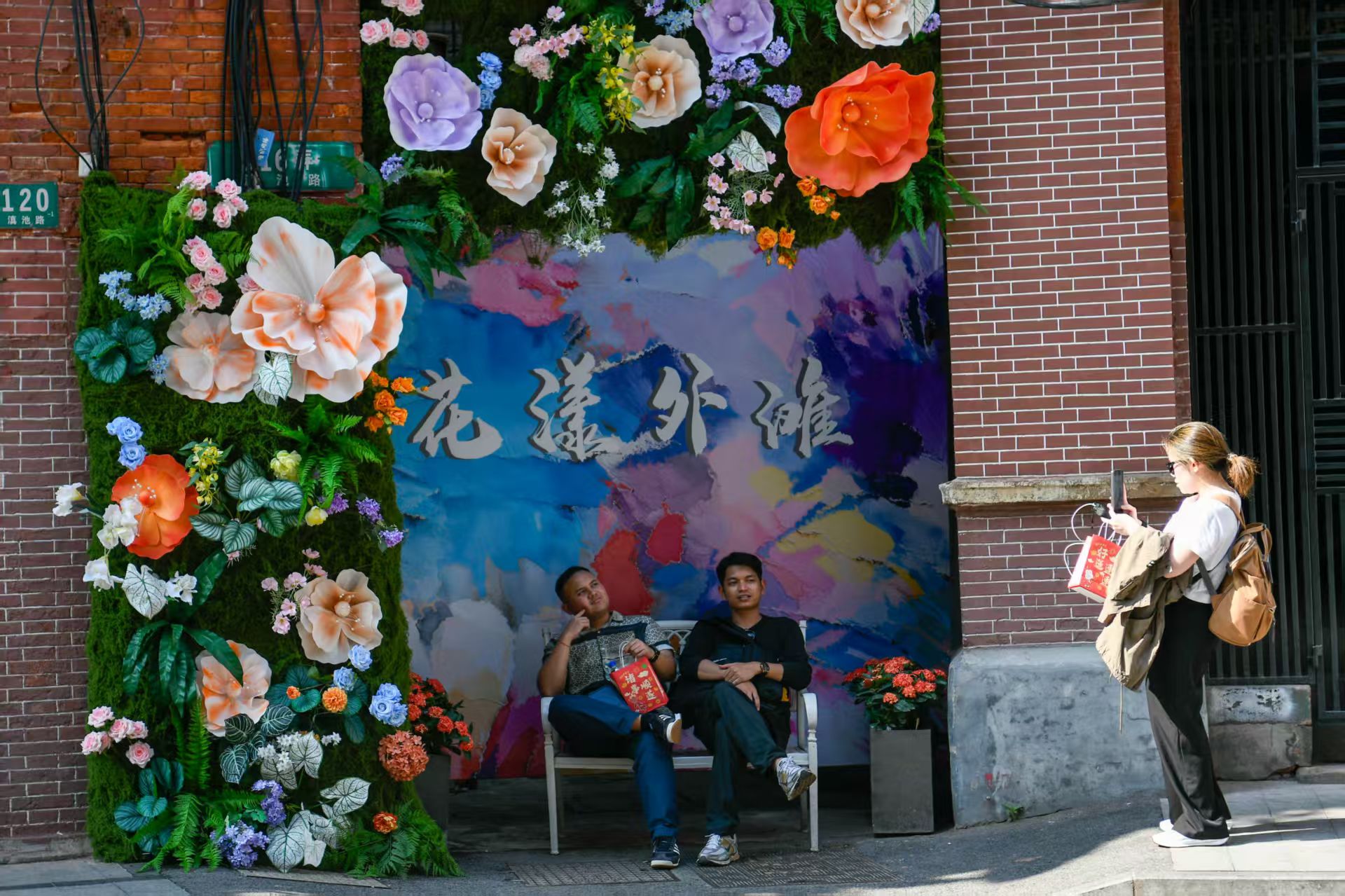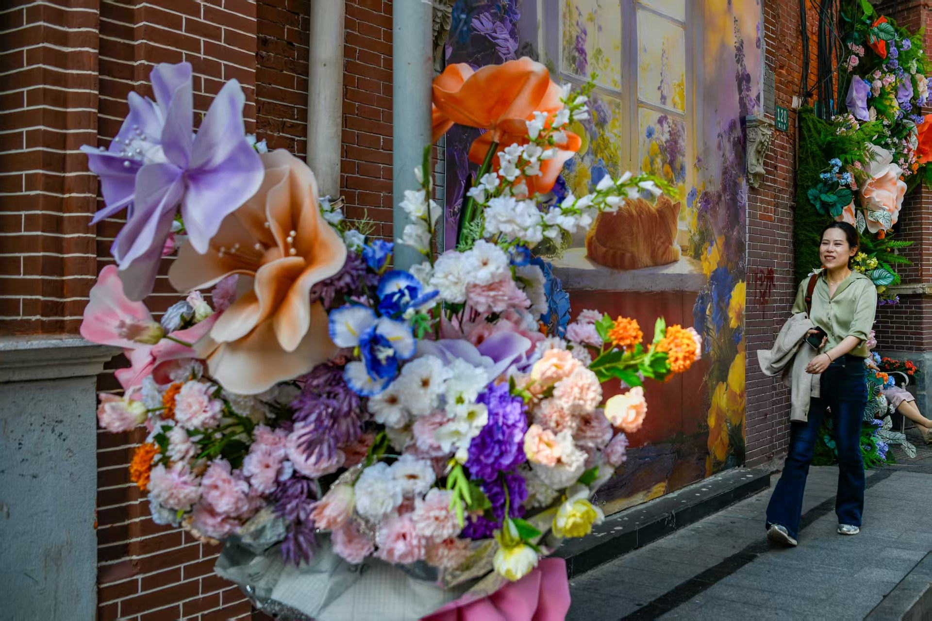 从四川中路到北京东路,百年建筑被鲜花覆盖,披上了五彩斑斓的“花衣”,构成一副美丽的城市画卷。