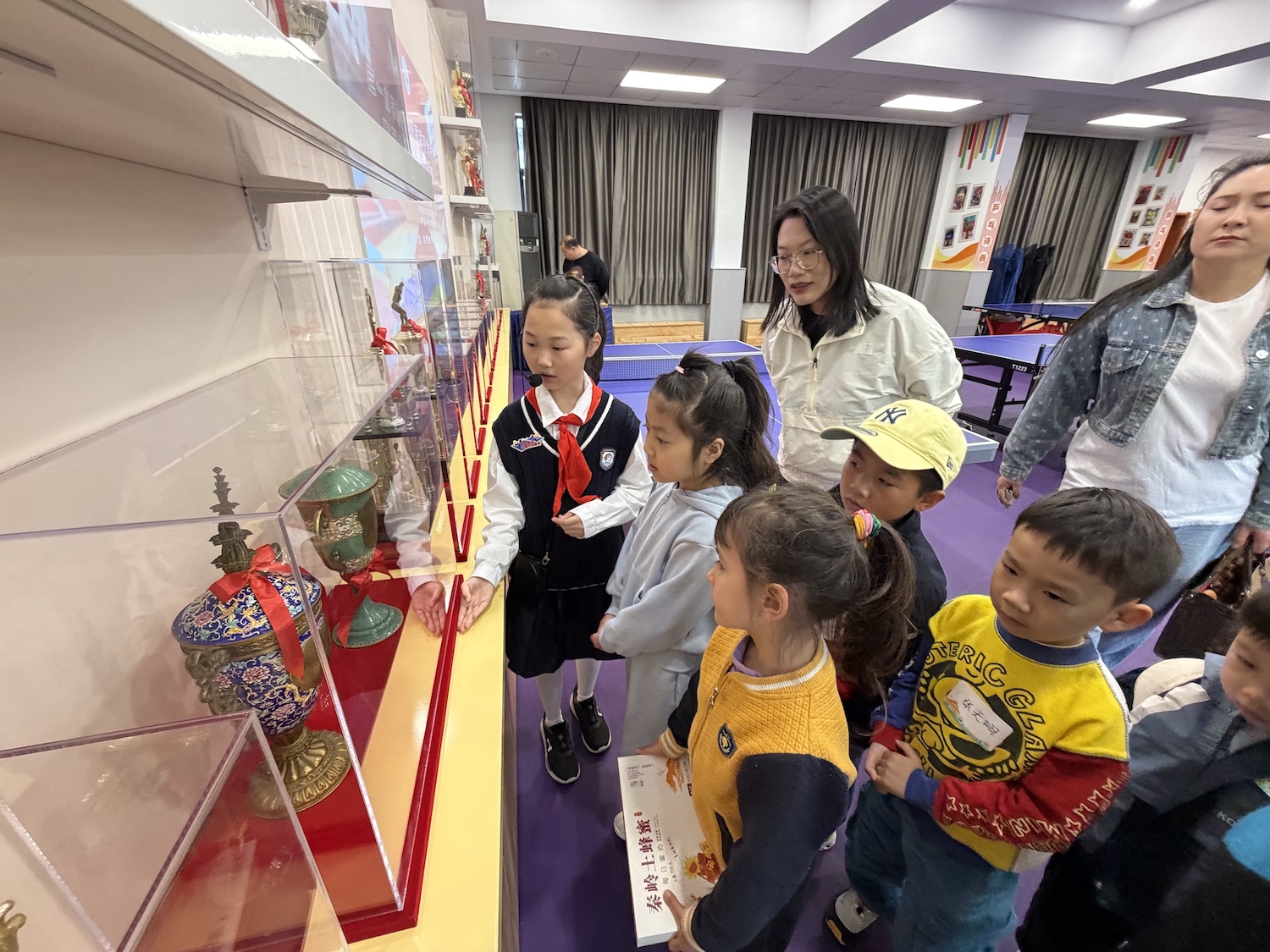 “弟弟,我们学校乒乓球经常拿冠军,还有世界冠军!”“等你来了,也可以来练球!”“我们还有乒乓文化月,特别好玩。”红领巾讲解员们在“乒乓博物馆里”拉着小朋友们的手热情地介绍着。记者了解到,巨鹿路第一小学被誉为“乒乓冠军的摇篮”,走出了陆元盛、何智丽等十余位世界冠军,为国家队输送了15名国手,为专业队输送了上百名乒乓人才。近年来,学校将乒乓特色从技能训练拓展为文化传承与精神培育,开发了《做乓乓响的中国人》乒乓思政课程,每年四月举行的“乒乓文化月”至今已连续举办十八届。