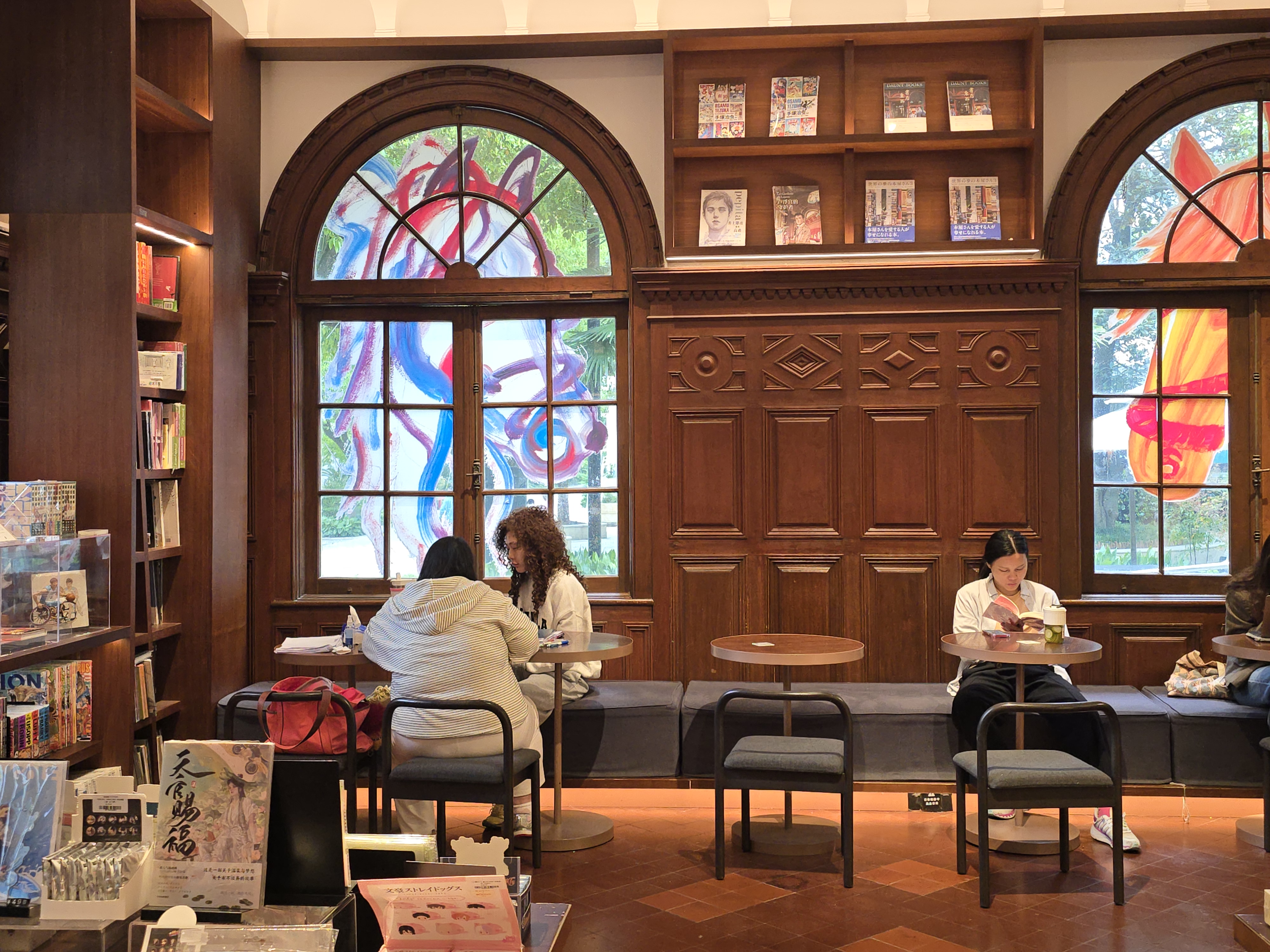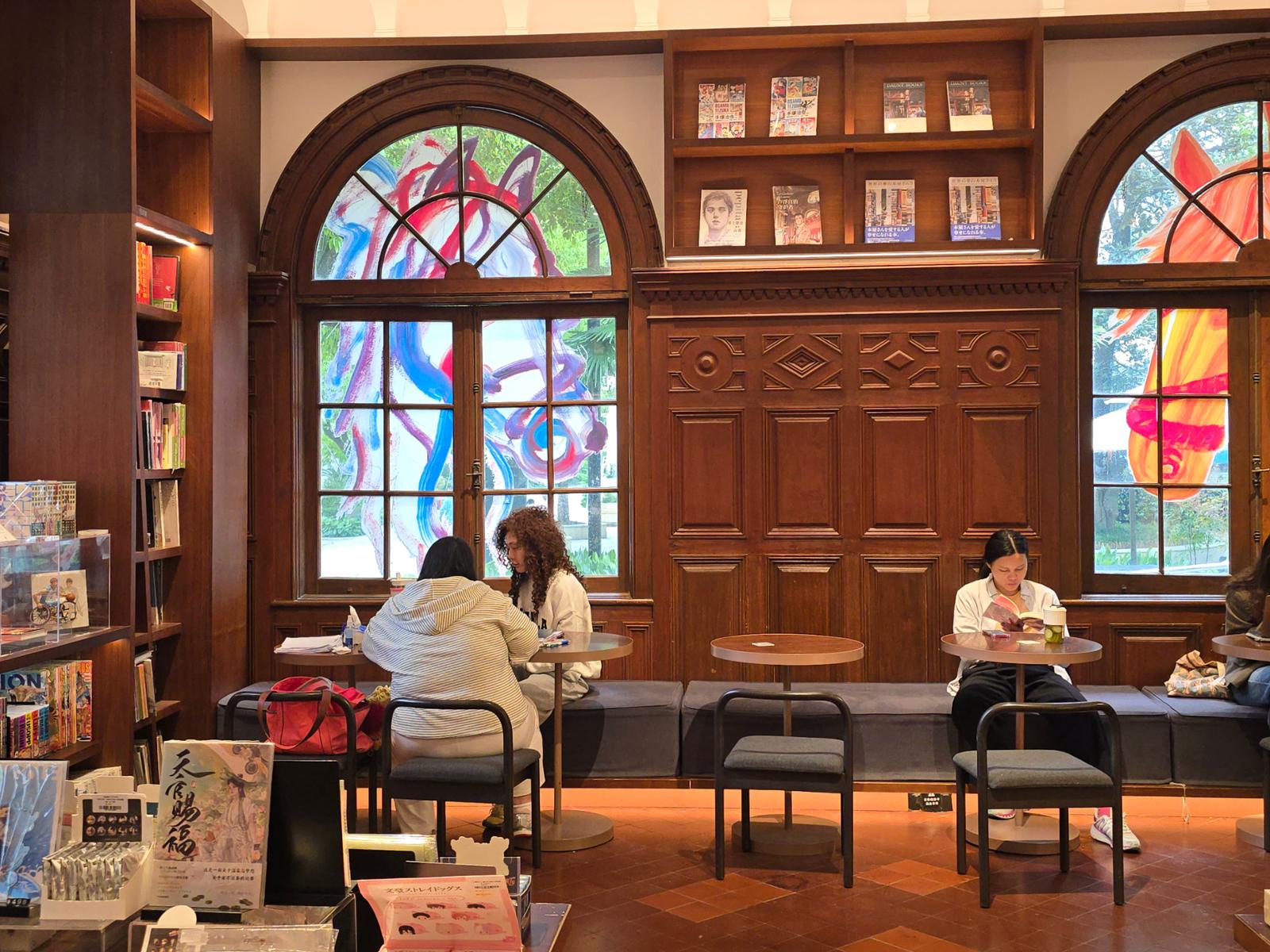 位于长宁区上生新所茑屋书店一楼的茑屋咖啡,为书店提供了可以坐下来的空间,让读者不必席地而坐或只能倚靠着书架阅读。