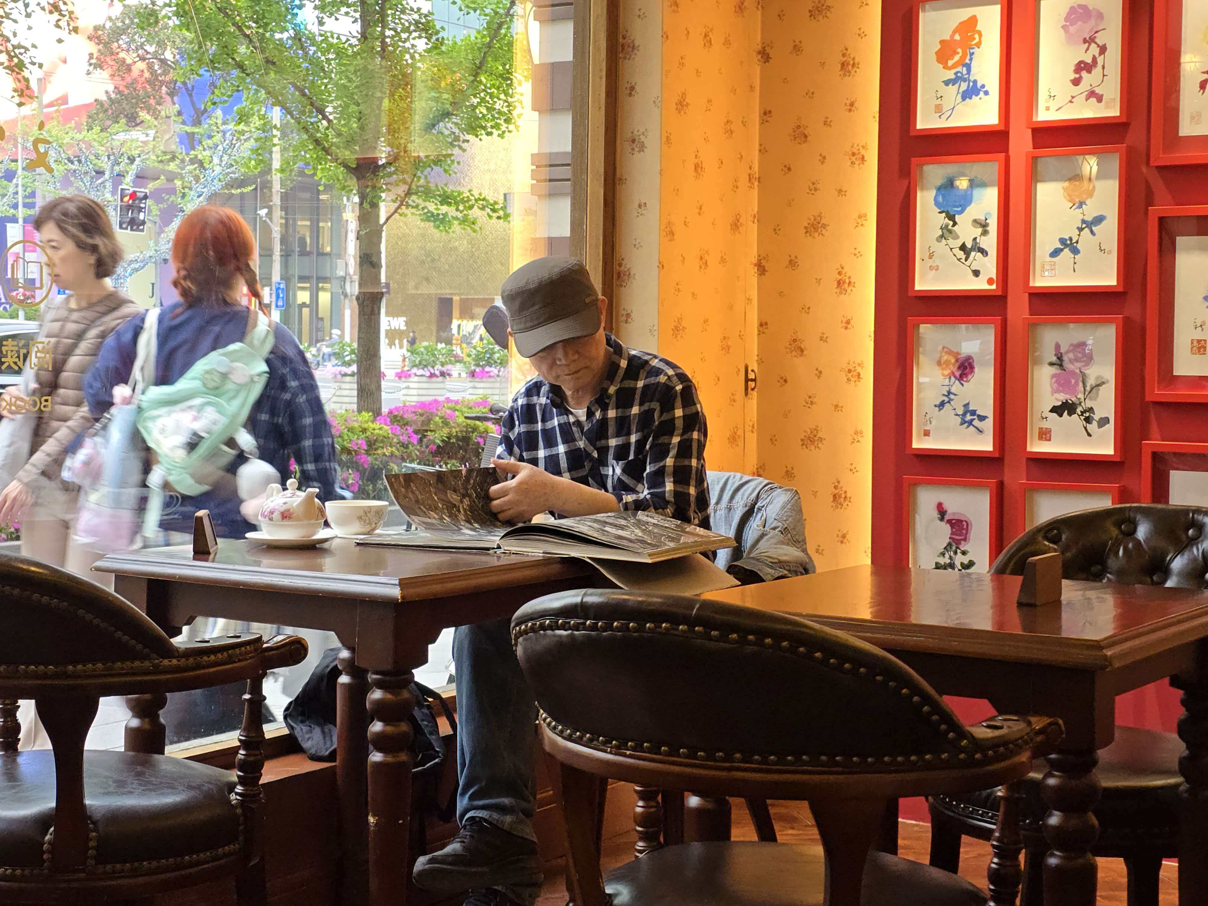 茑屋书店和咖啡馆内,市民边喝咖啡边读书。劳动报记者于玘珺 摄影