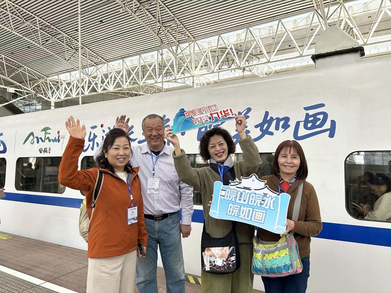 一幅“皖美如画”的锦绣长卷,在飞驰的列车上徐徐展开。巢湖民歌、庐州面塑、徽州剪纸、青阳腔、黄梅小戏等皖江非遗与民俗节目在车厢内轮番上演,动静结合为旅客全场景呈现“皖美如画”的独特魅力。“车上徽风皖韵的文化氛围非常浓郁,让我们对目的地更加心驰神往,希望今后高铁旅游新玩法越来越多!”62岁的上海阿姨楼莉一直用手机记录这些美好画面。