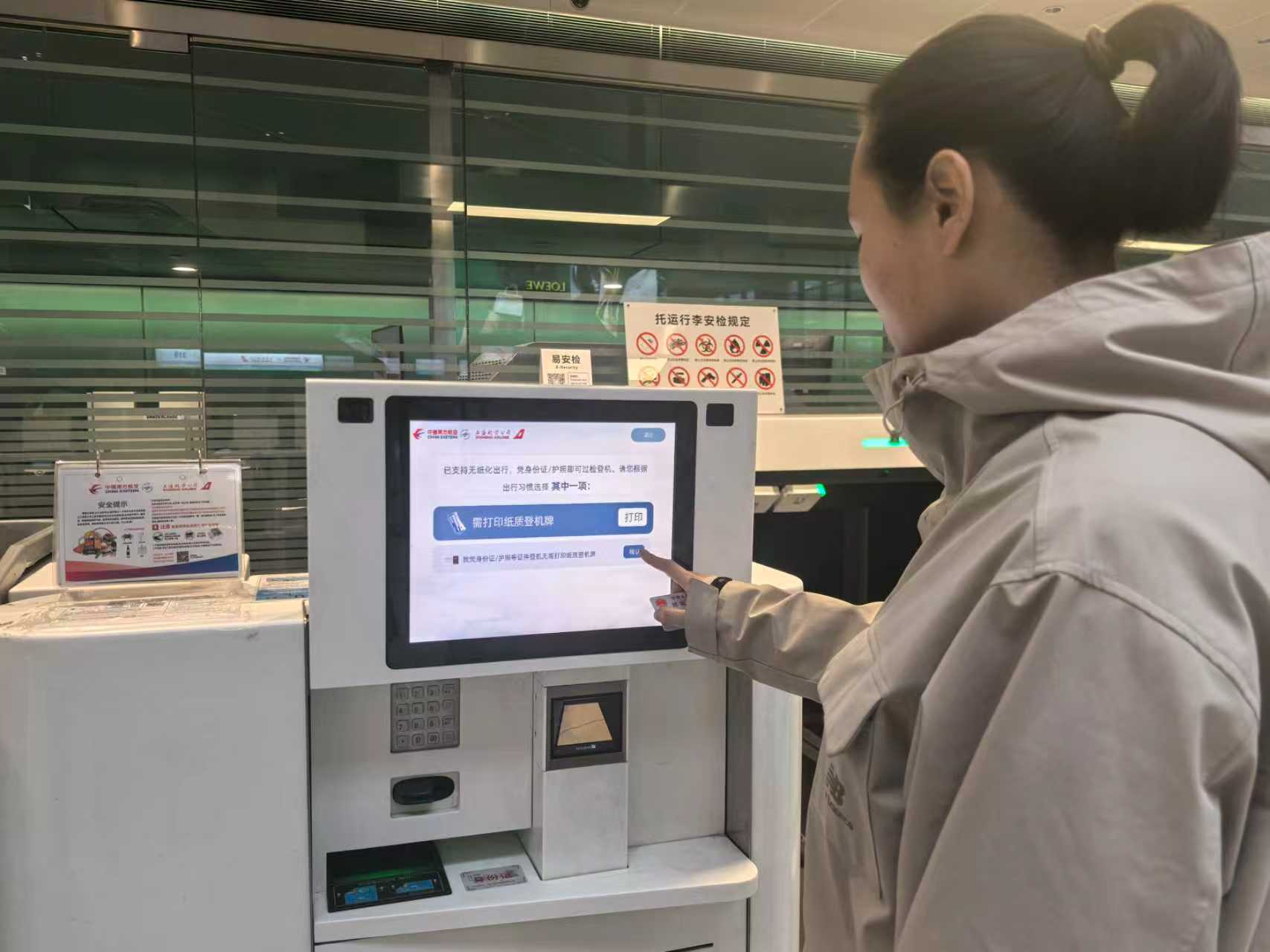 头图为旅客正在使用“无纸化”出行服务。东航供图