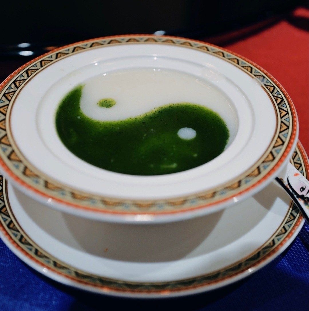 最幸运的是,我们吃到了梅先生最爱的鸳鸯鸡粥,48小时恒温烹制,将鸡脯肉熬成茸状,再加菜汁调制成粥,做成一白一绿的太极图,据说是当年梅先生登台演出前必用之食。电影《梅兰芳》中出现了四次喝粥的场景,这最寻常的粥,却是最真实老弄堂的味道,让人回味无穷。