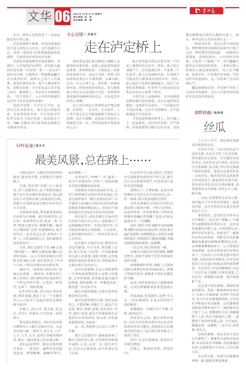 来得及的,因为丝瓜不单单长在竹篱笆上,也长到了屋檐上。竹篱笆与屋檐相距有两米左右,这丝瓜的藤蔓如何爬上去,又如何爬过去?撩开丝瓜叶面后,我看到了一根悬挂在两头的绳索。我断定丝瓜的藤蔓就是靠着这根绳索攀爬过去的。这种横着攀爬的样子,让人联想到其他事情,比如先辈抢夺泸定桥的战斗,比如自己小时候走独木桥的惊慌。虽然没有本质联系,但丝瓜拓宽自己生长地方的做法同样值得赞美。无论如何,丝瓜的植物性,决定了它们不如人聪慧,可事实却是,它们有另一种倔强与执着。我不敢想象下去。