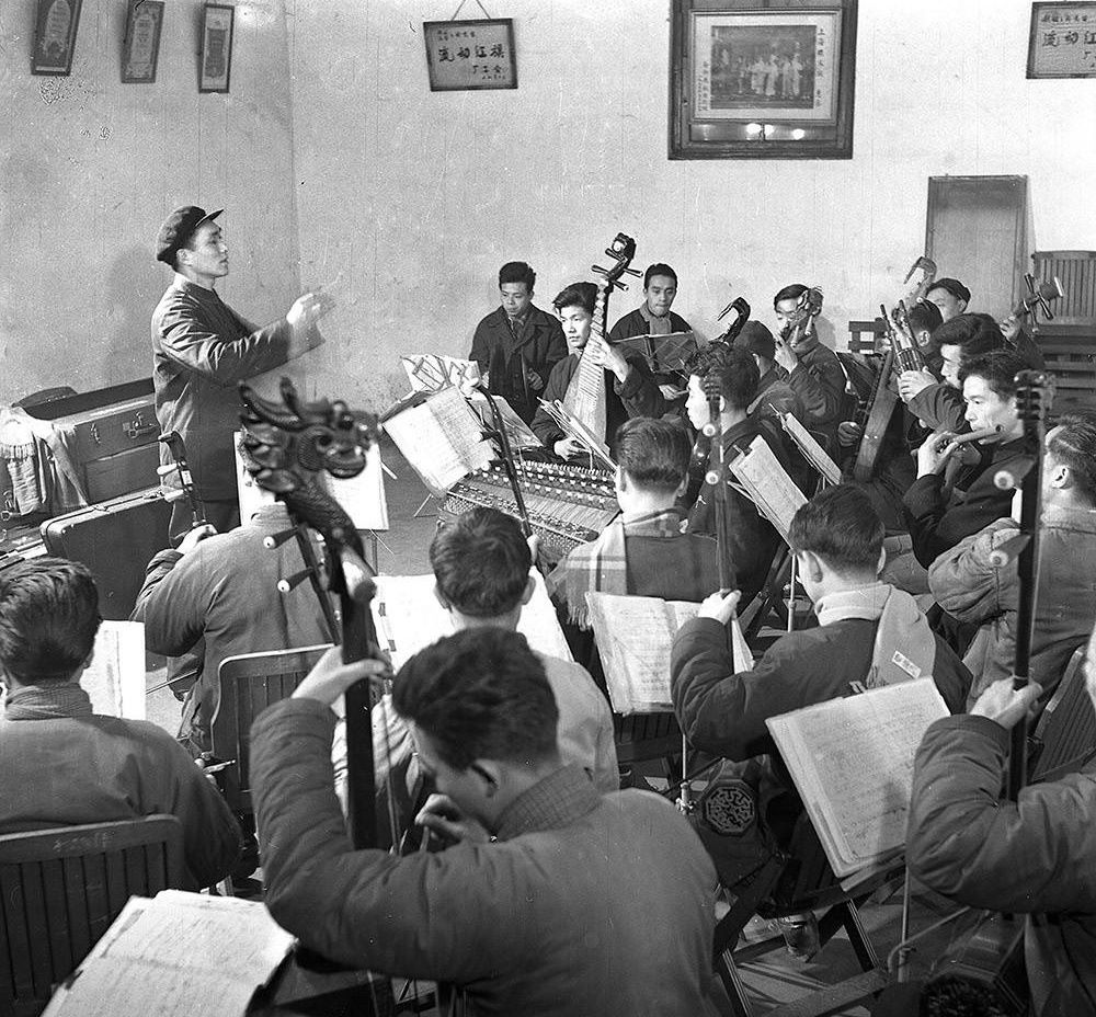上世纪70年代上海机床厂民乐队在厂俱乐部排练