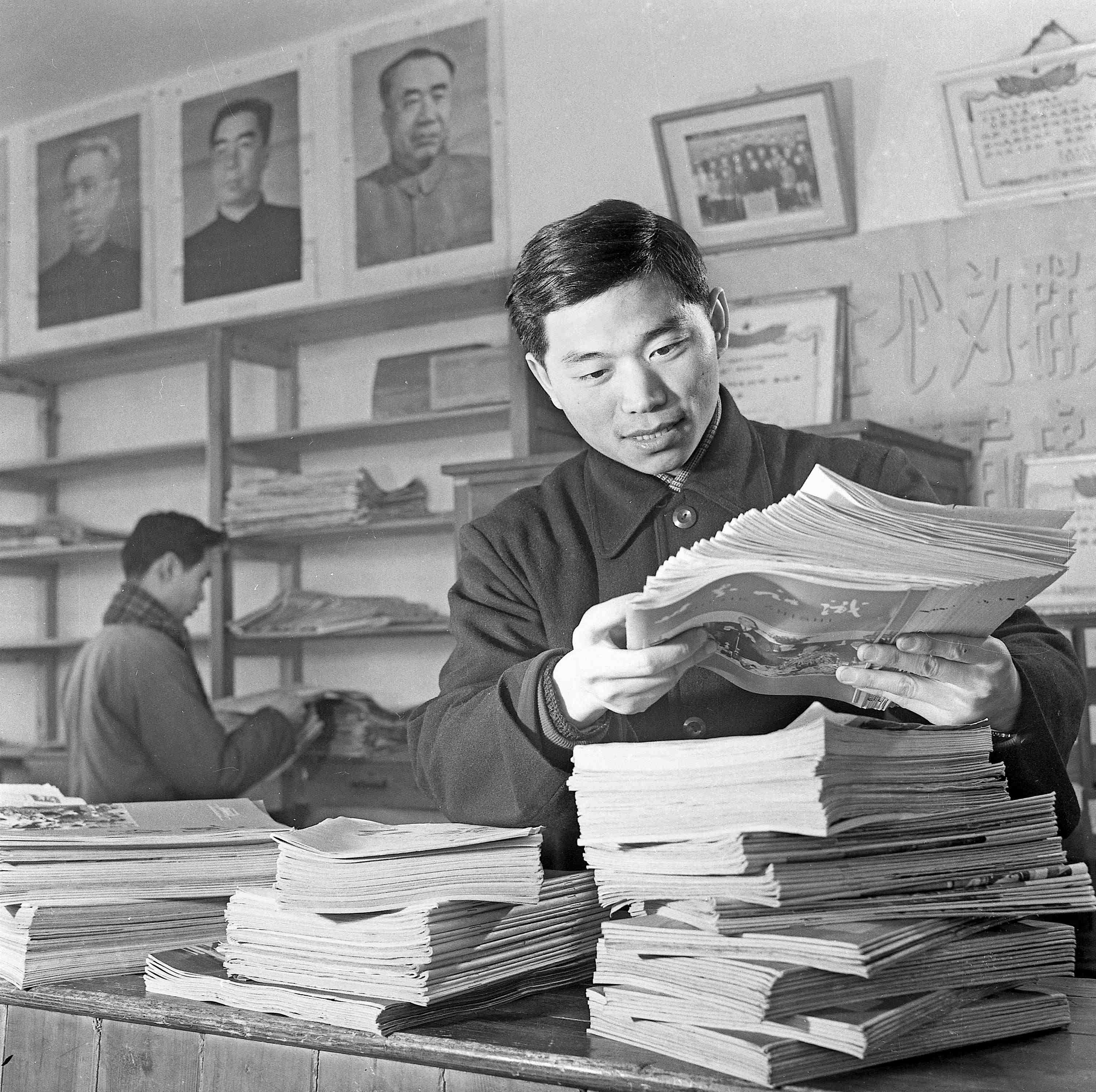 上世纪70年代上海机床厂职工图书室翻阅资料
