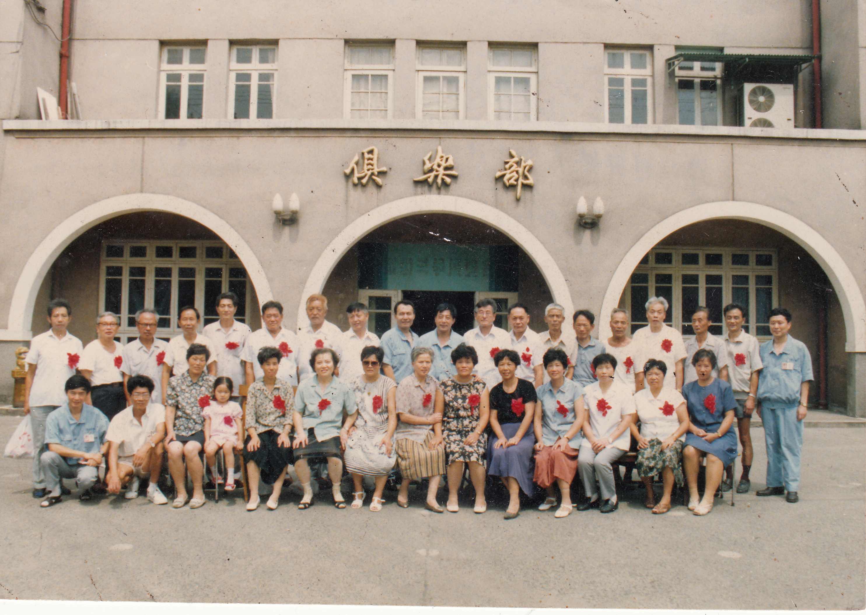 作者刘翔的父亲(后排右三)和先进工作者在厂俱乐部前合影