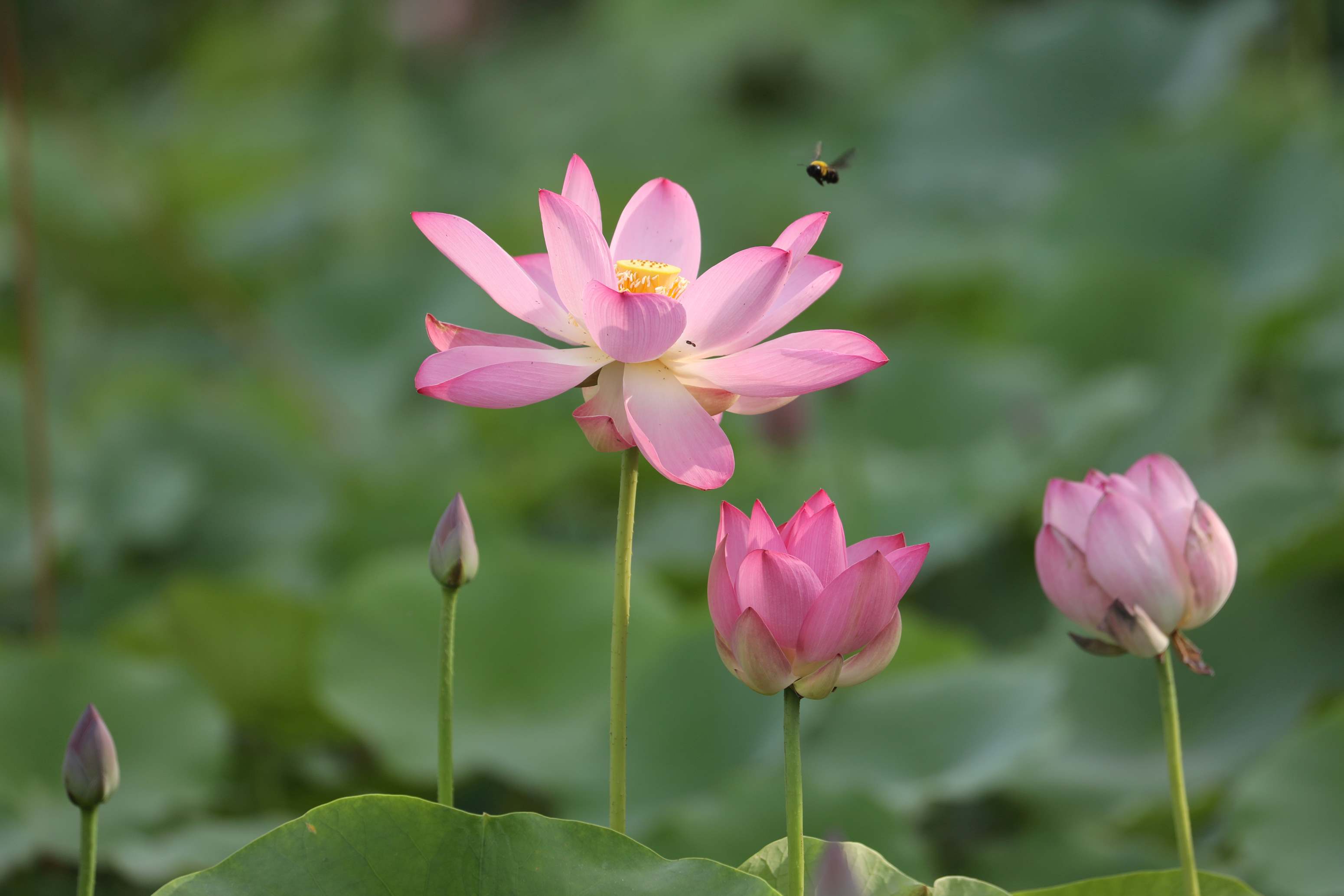 新荷、老荷、枯荷、待放的菡萏、才出水的新蓬,颓败倒伏的残花,枯黄干瘪了依然挺立的老莲房……除了水下淤泥中的根茎,荷一生的历程都袒露在我们面前。我又想起曾经不止一次听闻,发掘于考古遗址中的古莲子,在育荷专家培育下苏醒,重新生长、开花结实。