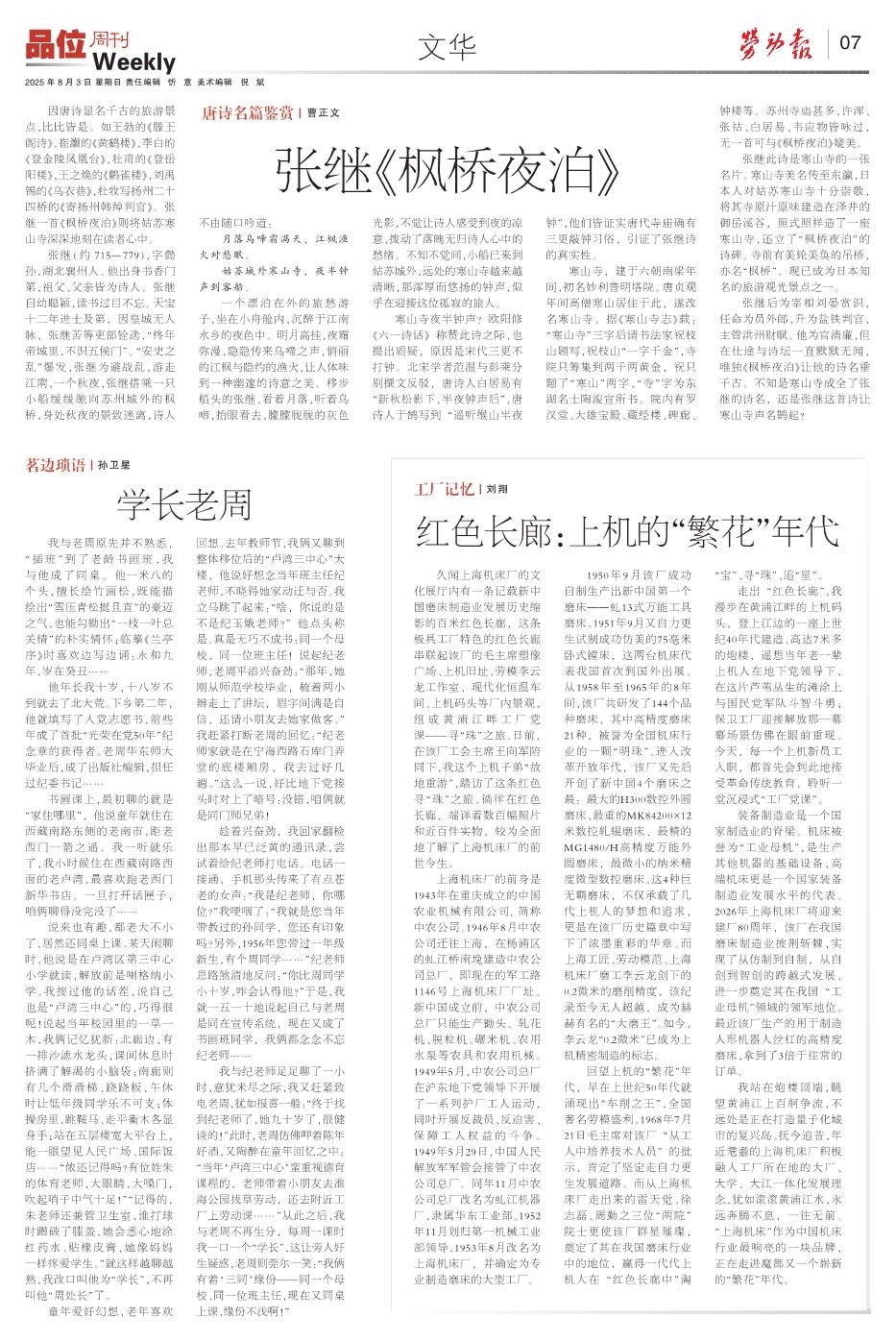 回望上机的“繁花”年代,早在上世纪50年代就涌现出“车削之王”,全国著名劳模盛利。1968年7月21日毛主席对该厂“从工人中培养技术人员”的批示,肯定了坚定走自力更生发展道路。而从上海机床厂走出来的雷天觉、徐志磊、周勤之三位“两院”院士更使该厂群星璀璨,奠定了其在我国磨床行业中的地位,赢得一代代上机人在“红色长廊中”淘“宝”、寻“珠”、追“星”。