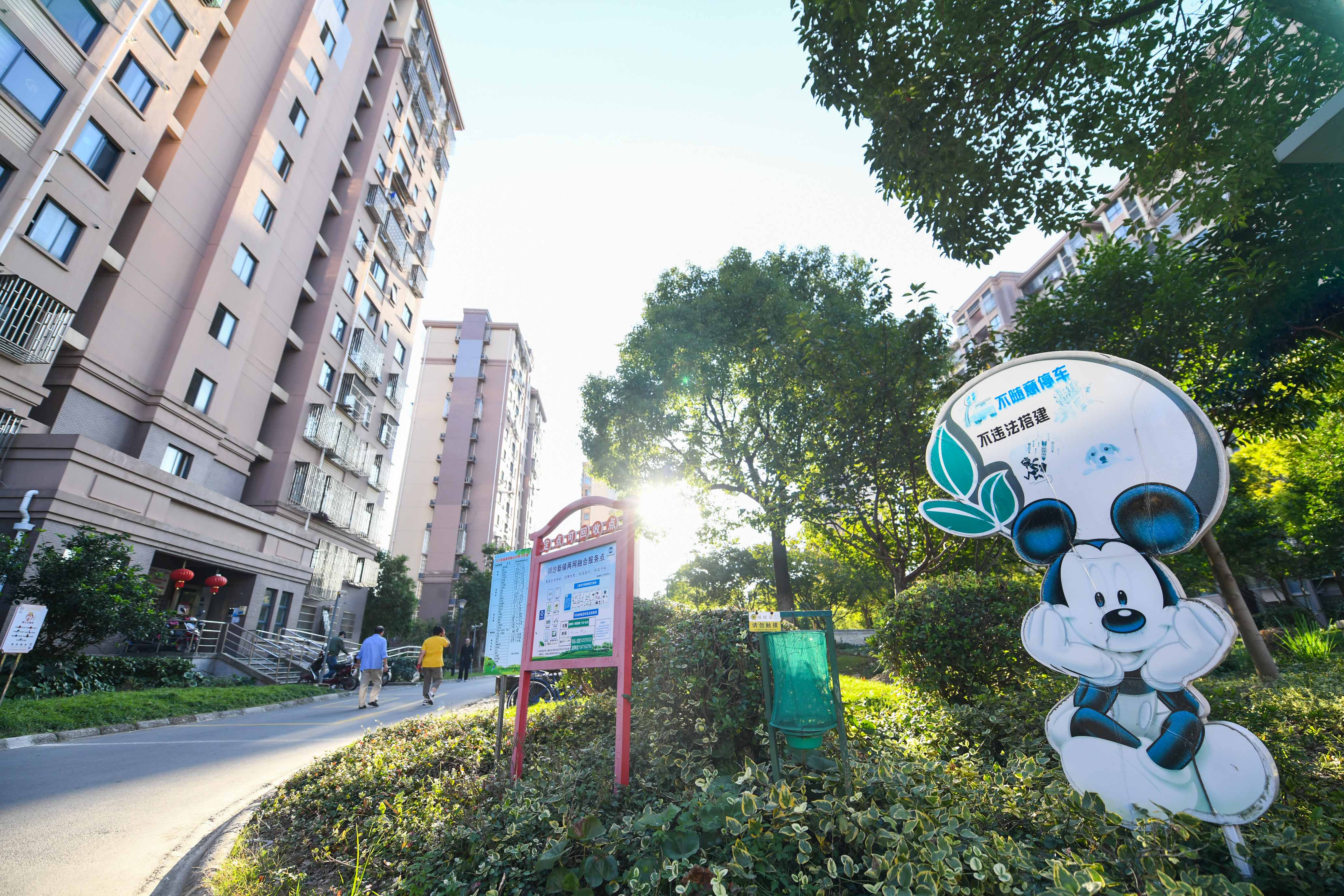 2007年,范正明和妻子搬到了位于华夏二路1278弄的“川迪三居”,一栋15层的小高层。他终于有了属于自己的100平方米三室两厅。和农村住房不同,这里有地下停车库、有茂盛的绿化;并且,考虑到小区多为农村动迁户,大家有“晾衣服”、“噶三湖”的习惯,小区里摆放了不少休闲凳、晾衣架,确保大家住得顺心。