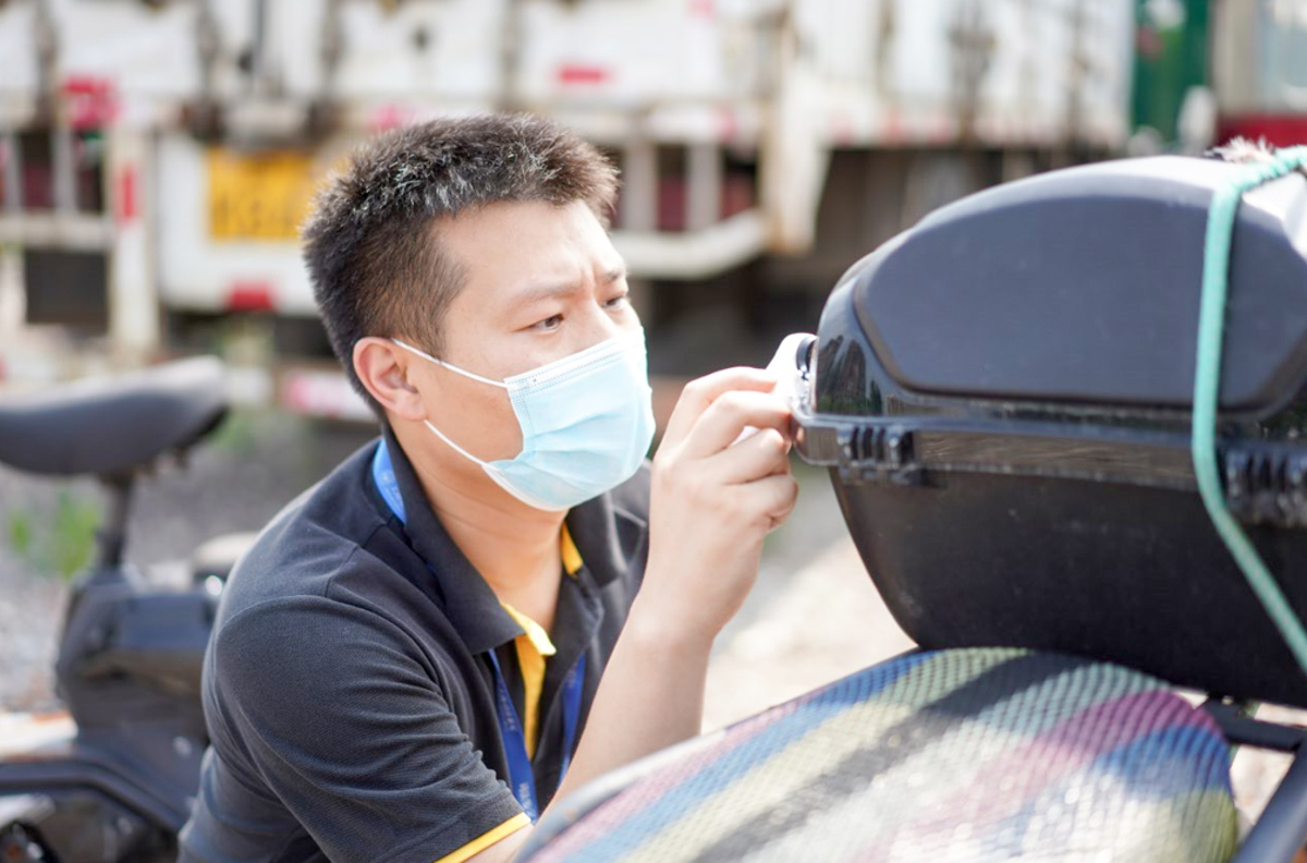上午11时,张志勇和同事将两辆电动自行车推回原位,历时一个小时的勘查告一段落。他们跨进车里刚坐定,便一口气喝下了大半瓶一升装的矿泉水。此时已临近中午,张志勇来到附近便利店买了盖浇饭带回车里,简单扒了几口饭,便赶往金山继续他们当天的鉴定任务。“考虑到疫情防控大局,我们如果去偏远的地方,都会自己带上早上从单位食堂买的包子大饼当午饭,或者带上两桶泡面,找停车场或者加油站借一些开水简单垫垫肚子,尽量减少不必要的接触。”张志勇说道。