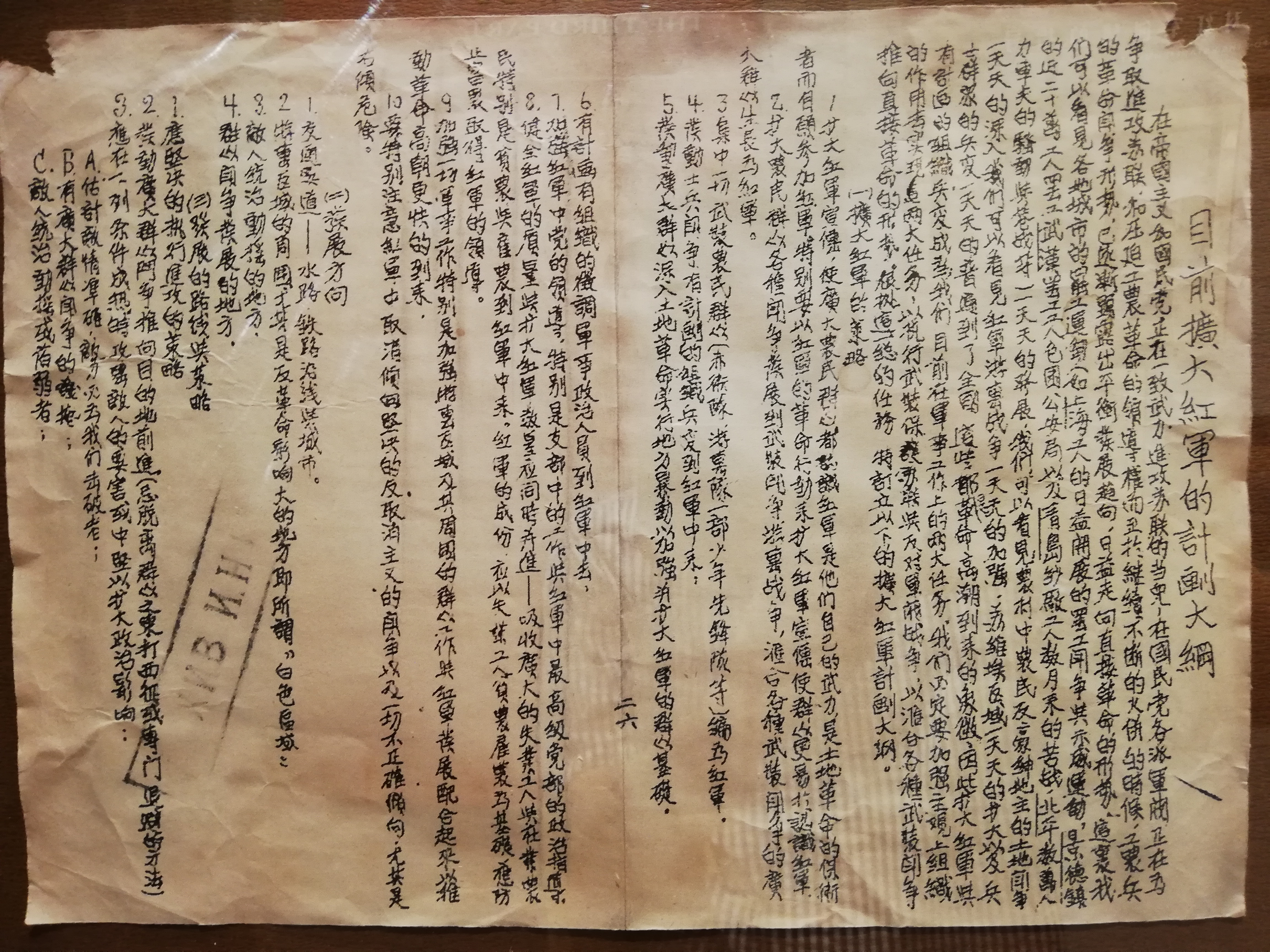 (1929年,中共中央军事部制定的《目前扩大红军的计划大纲》)