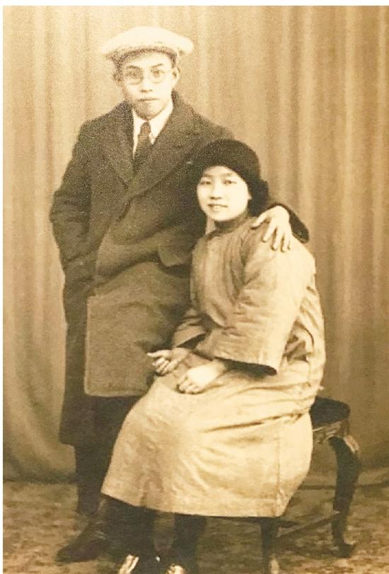 (1926年,王一飞与妻子陆缀雯在上海)