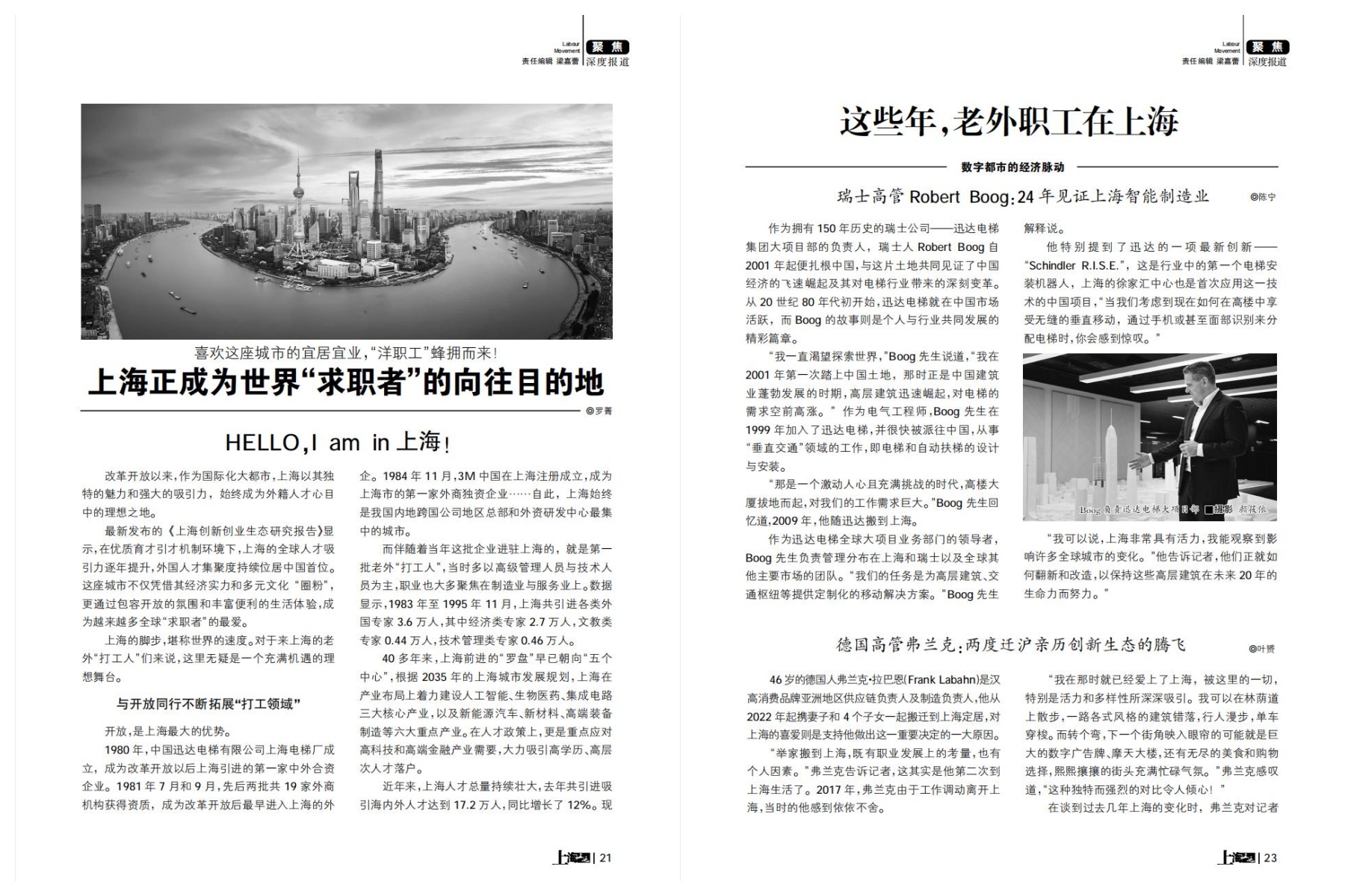 HELLO,I am in上海!改革开放以来,作为国际化大都市,上海以其独特的魅力和强大的吸引力,始终成为外籍人才心目中的理想之地,成为越来越多全球“求职者”的最爱。对于来上海的老外“打工人”们来说,这里无疑是一个充满机遇的理想舞台。