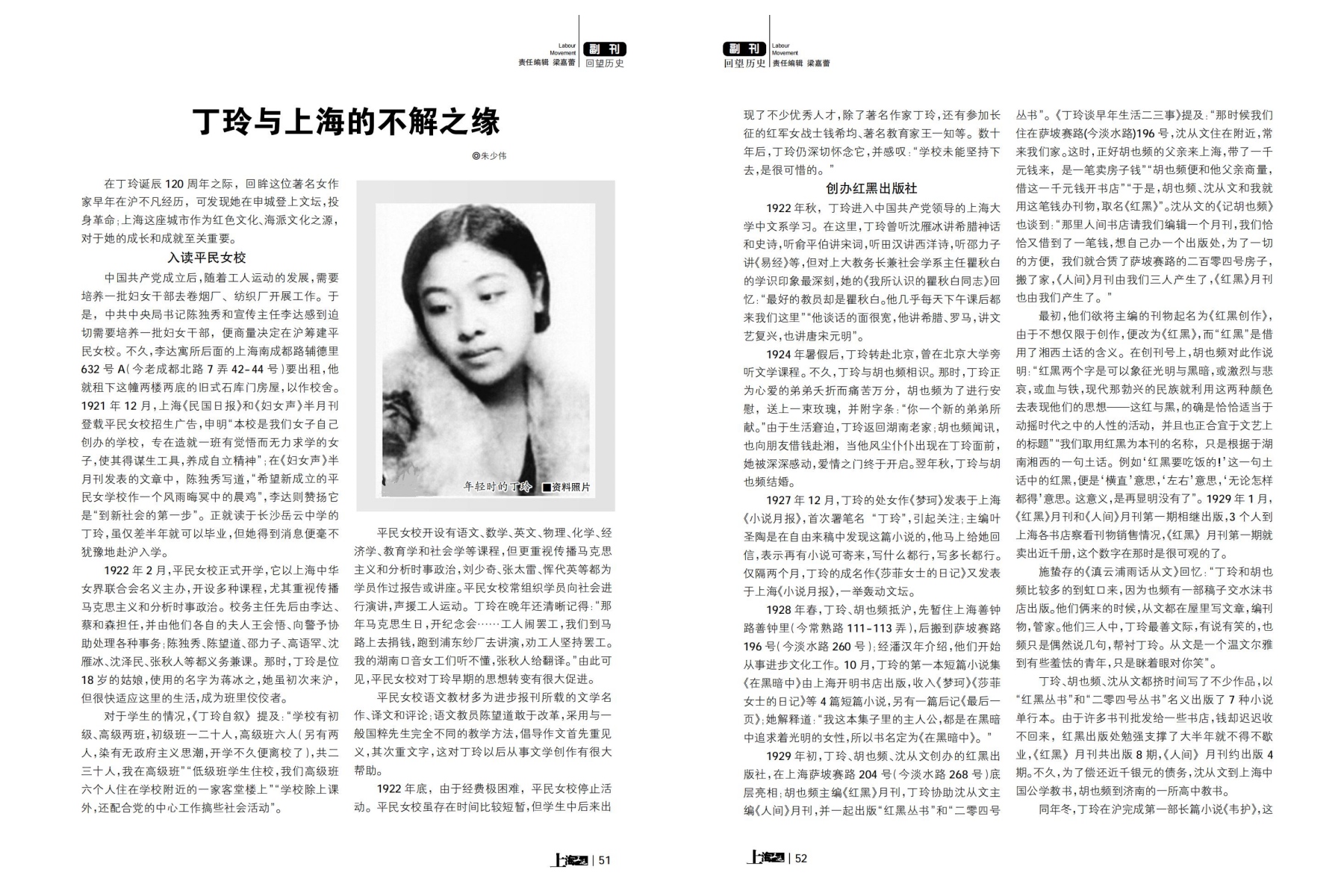 在丁玲诞辰120周年之际,回眸这位著名女作家早年在沪不凡经历,可发现她在申城登上文坛,投身革命;上海这座城市作为红色文化、海派文化之源,对于她的成长和成就至关重要。