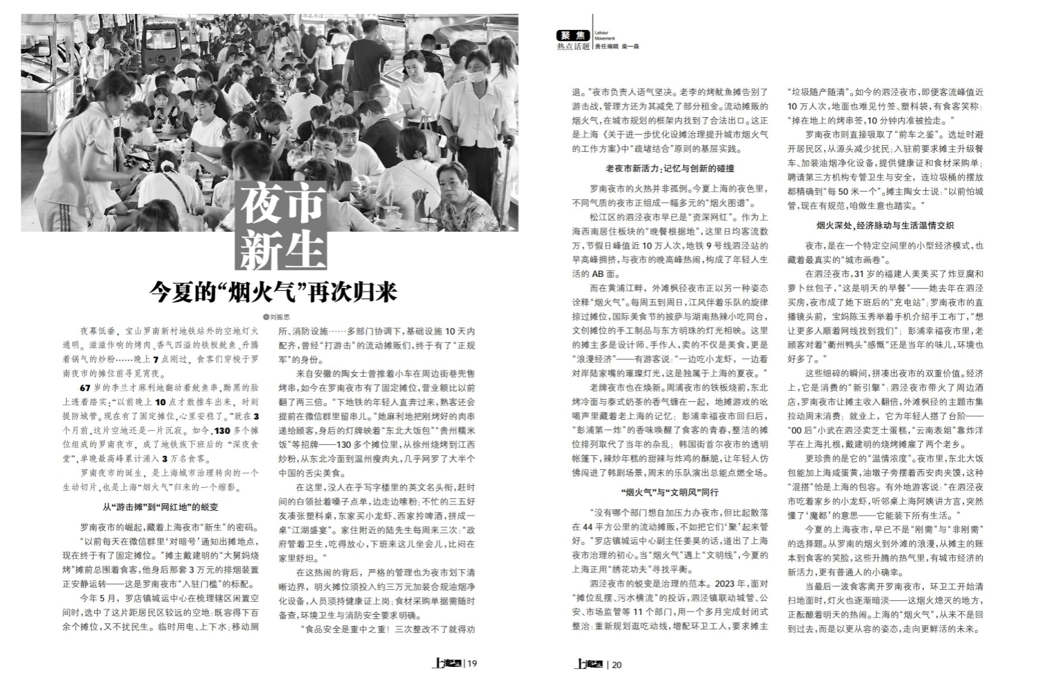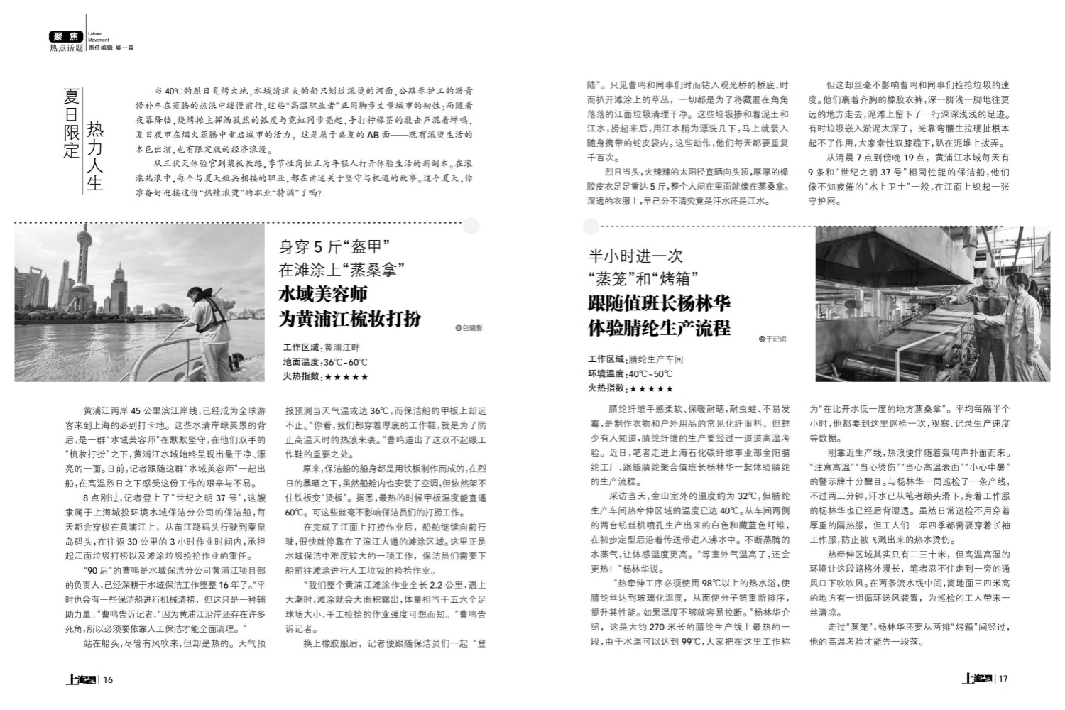 当40℃的烈日炙烤大地,水域清道夫的船只划过滚烫的河面,公路养护工的沥青修补车在蒸腾的热浪中缓慢前行,这些“高温职业者”正用脚步丈量城市的韧性;而随着夜幕降临,烧烤摊主挥洒孜然的弧度与霓虹同步亮起,手打柠檬茶的敲击声混着蝉鸣,夏日夜市在烟火蒸腾中重启城市的活力。这是属于盛夏的AB面——既有滚烫生活的本色出演,也有限定版的经济浪漫。