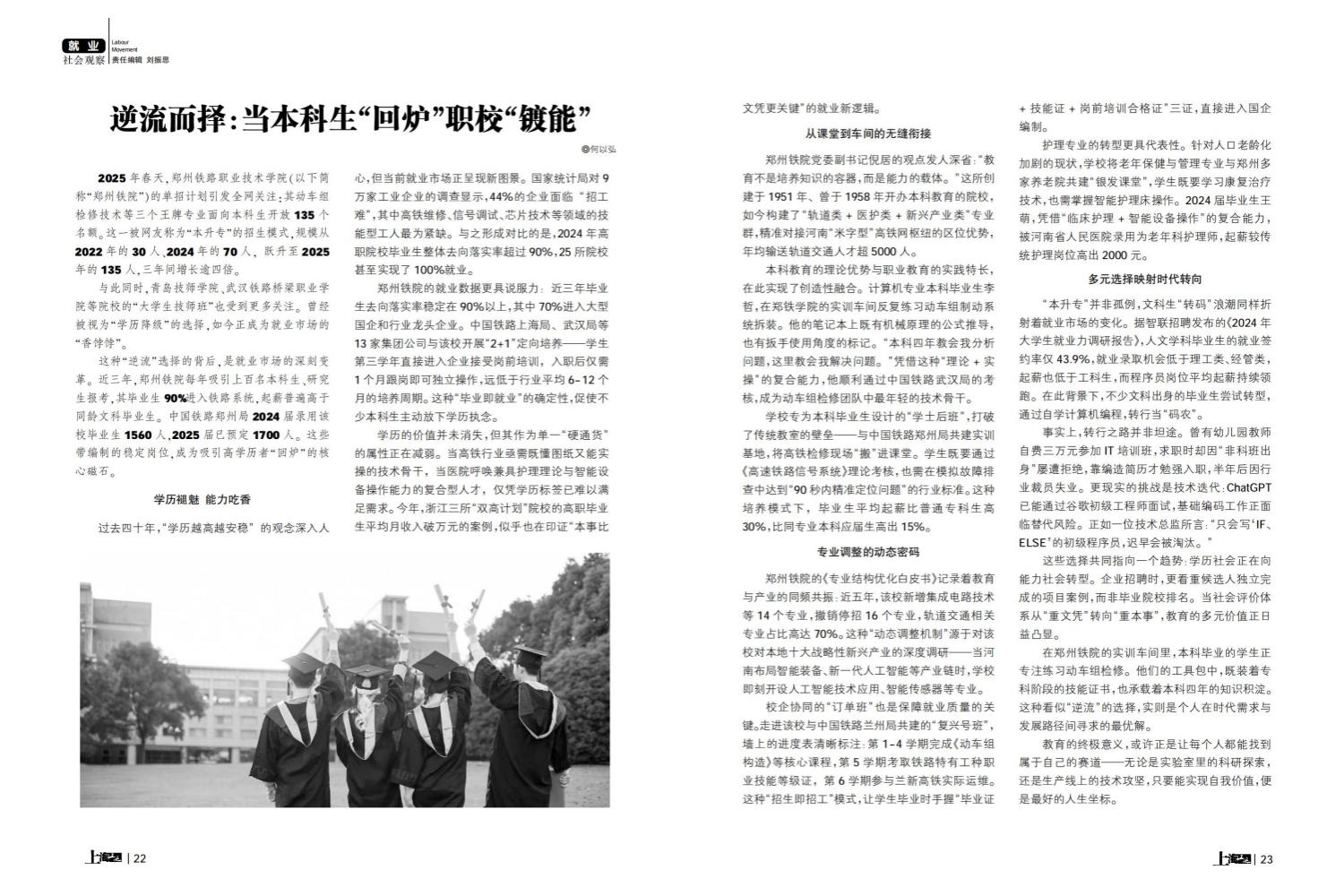 2025年春天,郑州铁路职业技术学院(以下简称“郑州铁院”)的单招计划引发全网关注,与此同时,青岛技师学院、武汉铁路桥梁职业学院等院校的“大学生技师班”也受到更多关注。曾经被视为“学历降级”的选择,如今正成为就业市场的“香饽饽”。这些带编制的稳定岗位,成为吸引高学历者“回炉”的核心磁石。