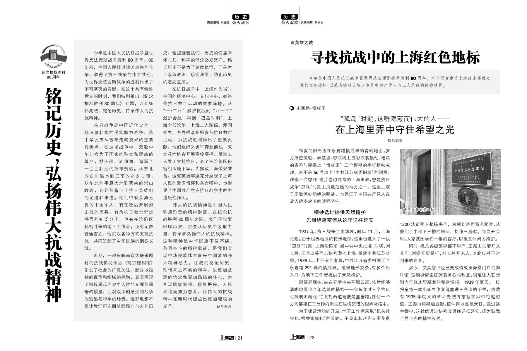 今年是中国人民抗日战争暨世界反法西斯战争胜利80周年。80年前,中国人民经过艰苦卓绝的斗争,取得了抗日战争的伟大胜利,为世界反法西斯战争的胜利作出了不可磨灭的贡献。在这个具有特殊意义的时刻,我们特别推出《纪念抗战胜利80周年》专题,以此缅怀先烈,铭记历史,传承伟大的抗战精神。