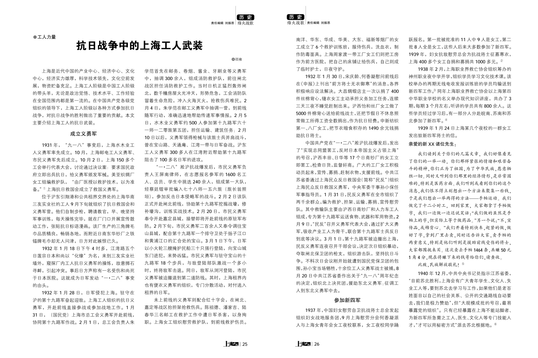 在中国共产党各级党组织的领导下,上海工人阶级以各种方式参加抗日战争,对抗日战争的胜利做出了重要的贡献。本文主要介绍上海工人的抗日武装。