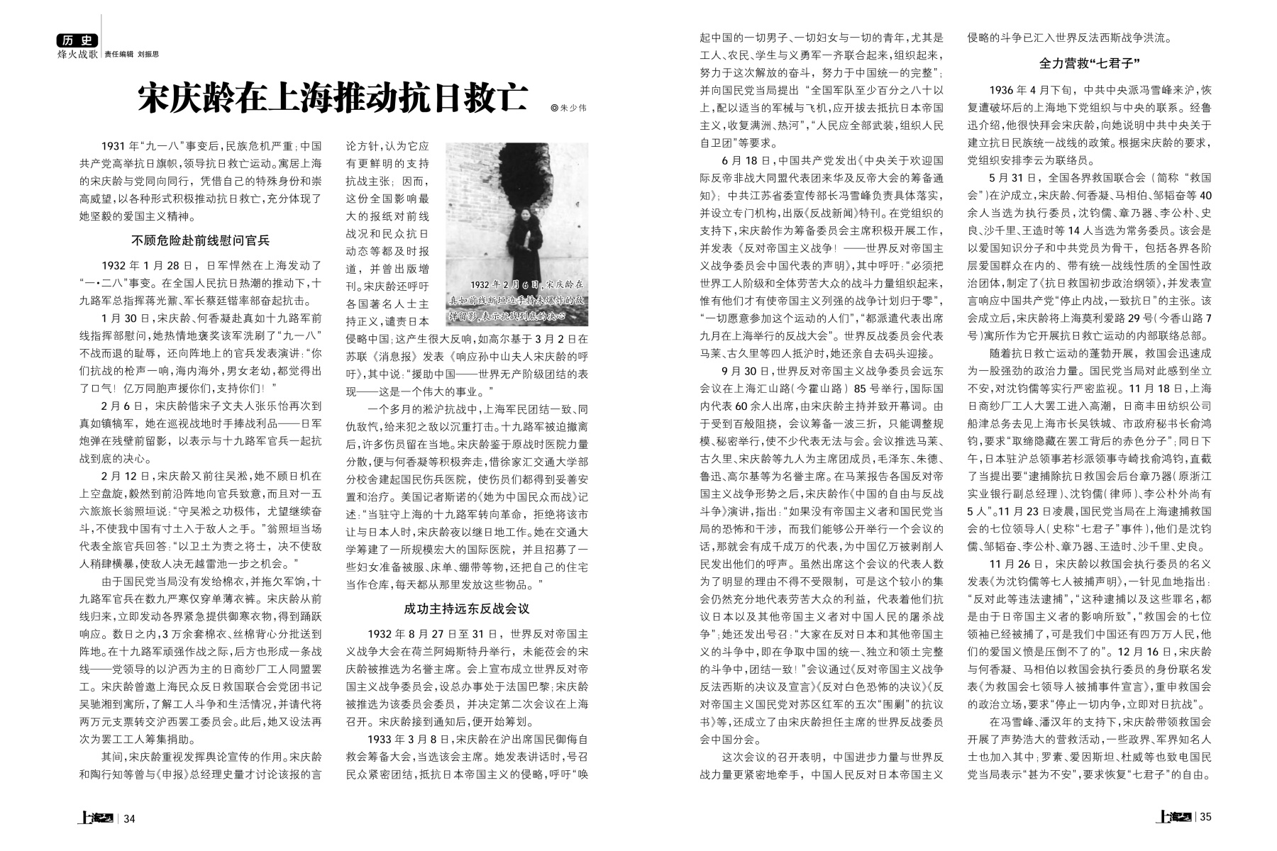 1931年“九一八”事变后,民族危机严重;中国共产党高举抗日旗帜,领导抗日救亡运动。寓居上海的宋庆龄与党同向同行,凭借自己的特殊身份和崇高威望,以各种形式积极推动抗日救亡,充分体现了她坚毅的爱国主义精神。1937年8月13日,淞沪会战爆发,在硝烟中,宋庆龄不辞辛劳为抗敌奔忙。