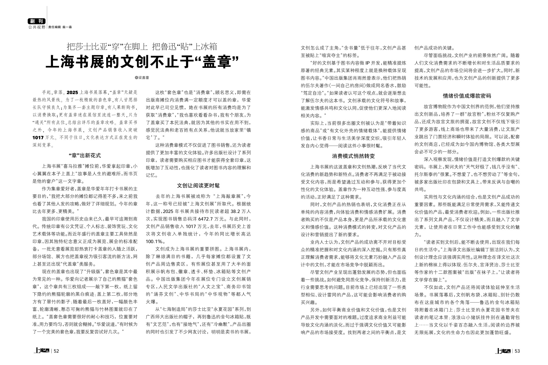 手起,章落。2025上海书展落幕,“盖章”无疑是最热的风景线。盖章买书之外,今年的上海书展,文创产品销售收入突破1017万元。不同于往日,文化表达方式正在发生的深刻变革。