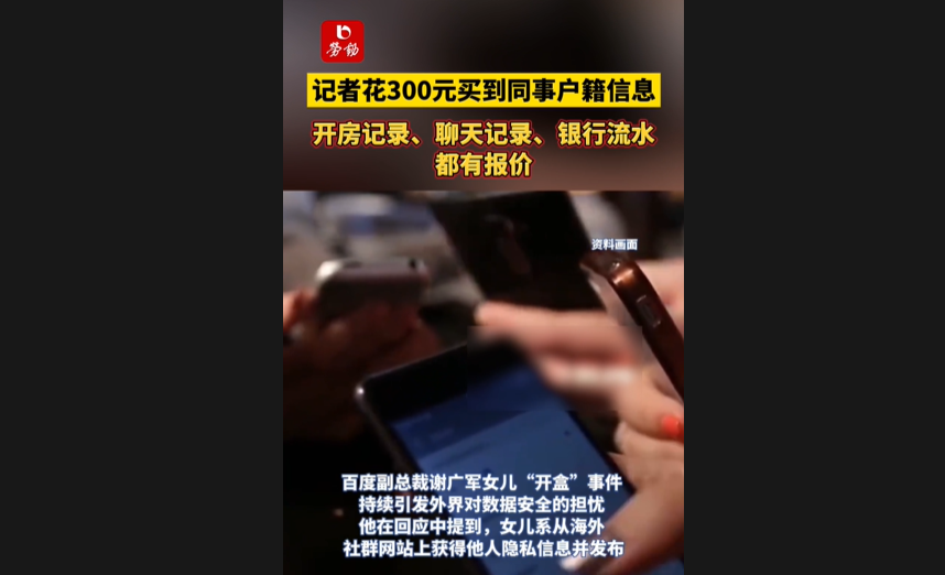 记者花300元买到同事户籍信息,开房记录、聊天记录、银行流水都有报价
