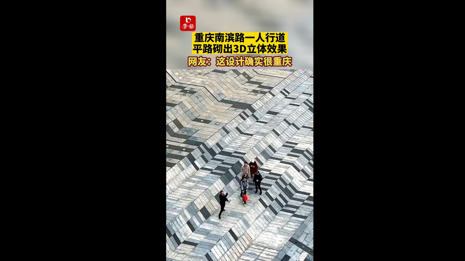 重庆南滨路一人行道,平路砌出3D立体效果,网友:这设计确实很重庆