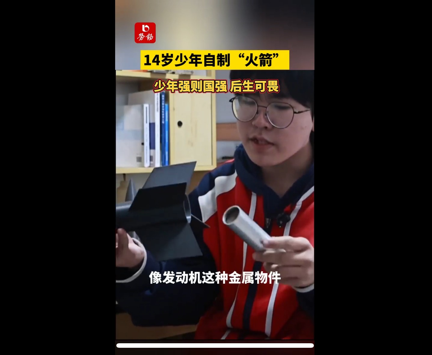 14岁少年自制“火箭” 少年强则国强,后生可畏。