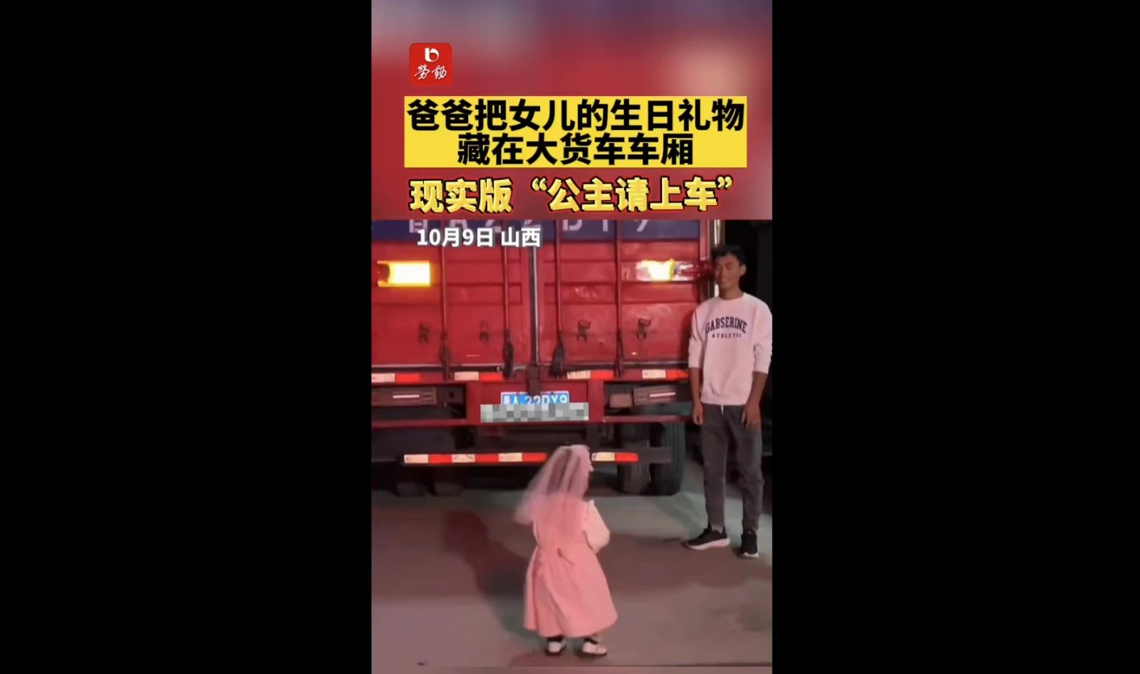 爸爸把女儿的生日礼物藏在大货车车厢,现实版“公主请上车”