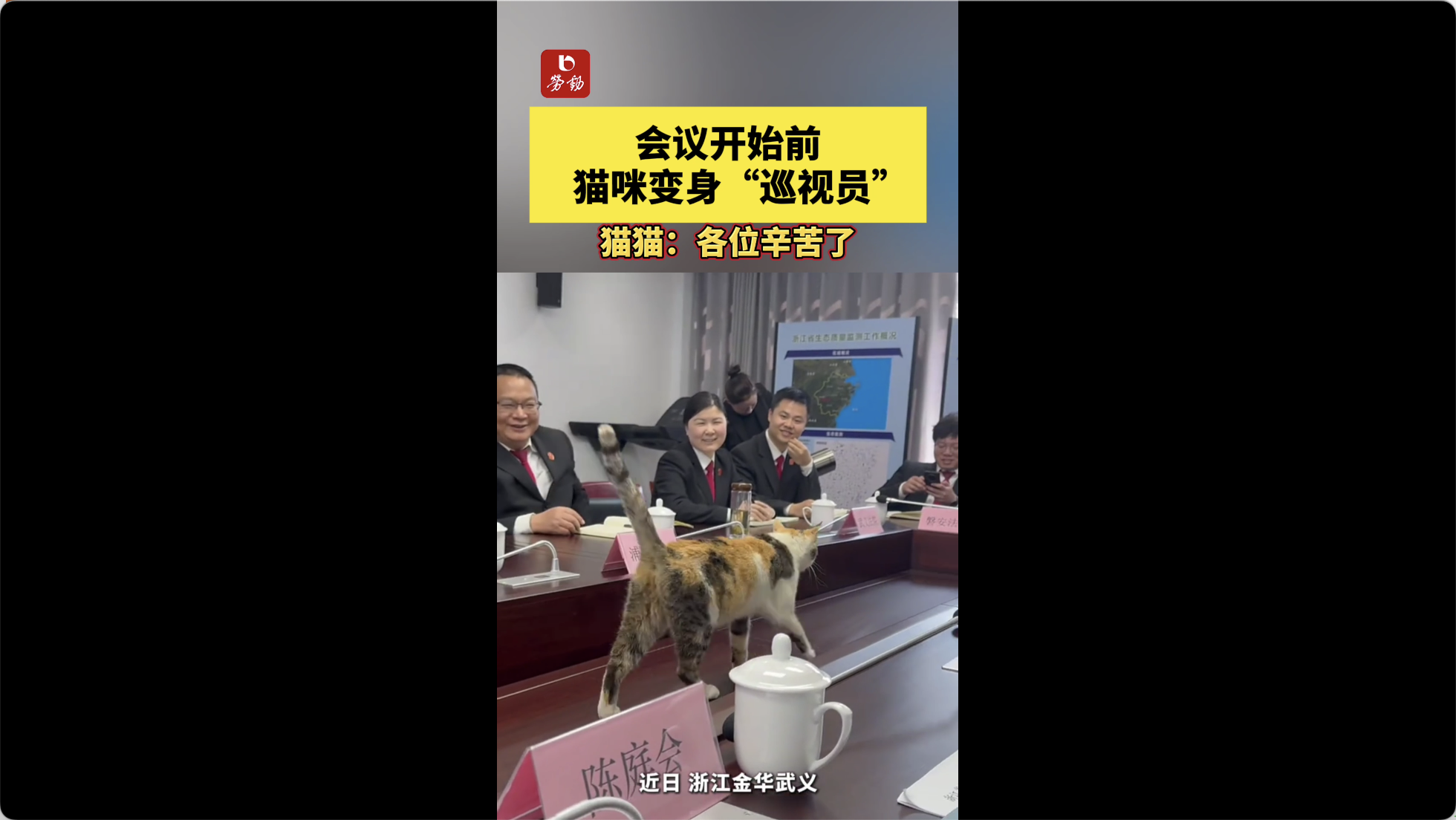 会议开始前猫咪变身“巡视员”,猫猫:各位辛苦了
