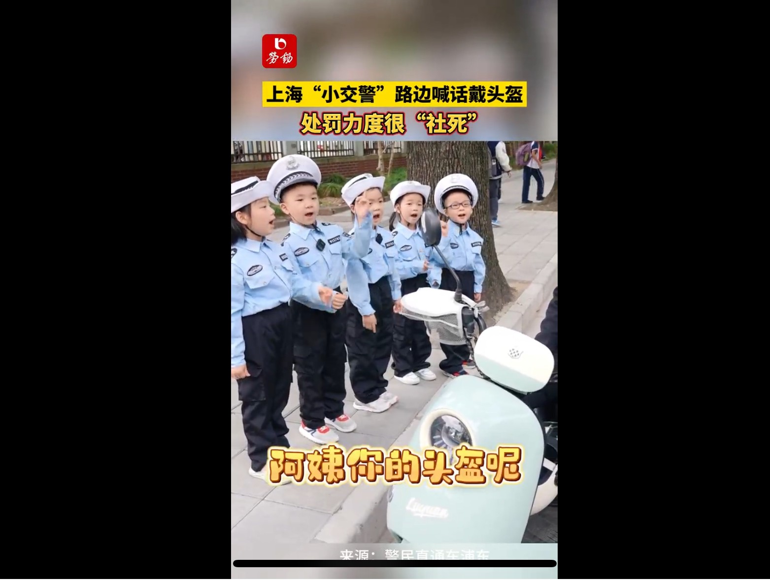 上海“小交警”路边喊话戴头盔 ,处罚力度很“社死”。