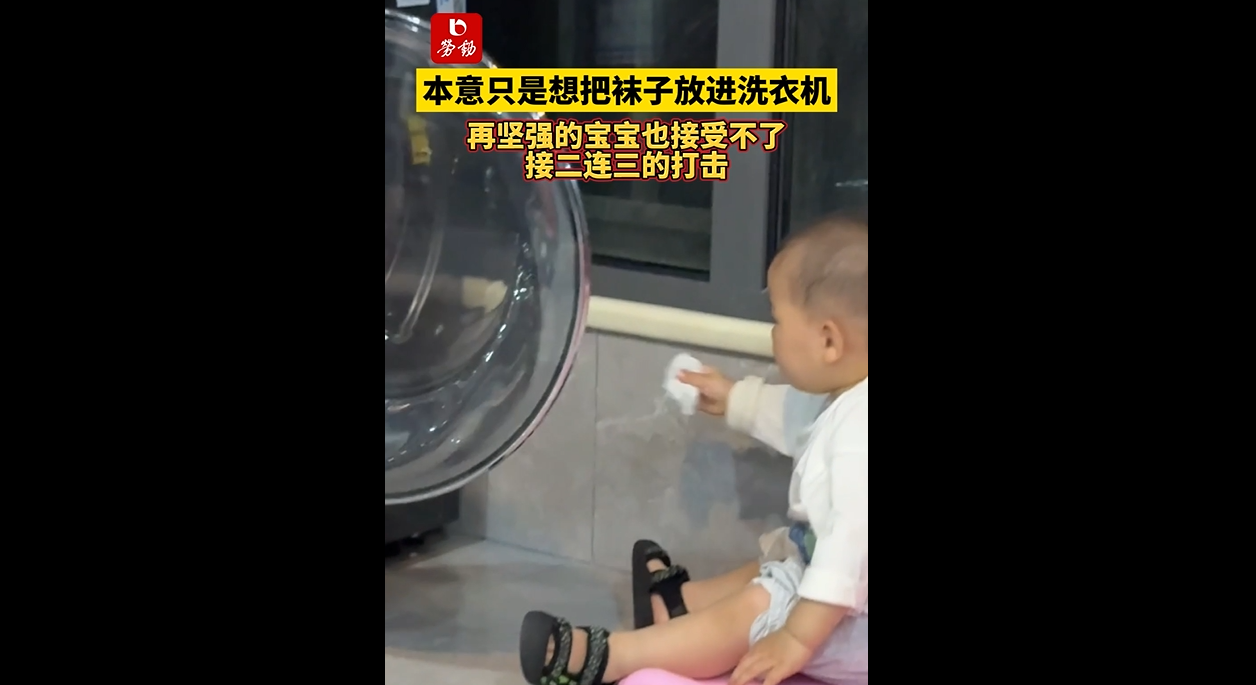 本意只是想把袜子放进洗衣机,再坚强的宝宝也接受不了接二连三的打击,来源:姜聿那个赞赞