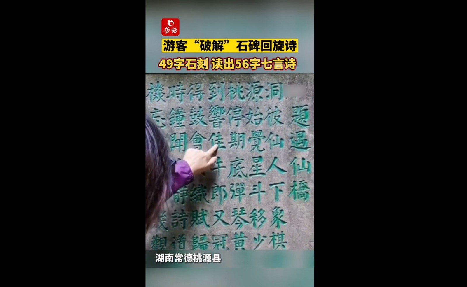 游客“破解”石碑回旋诗,49字石刻读出56字七言诗