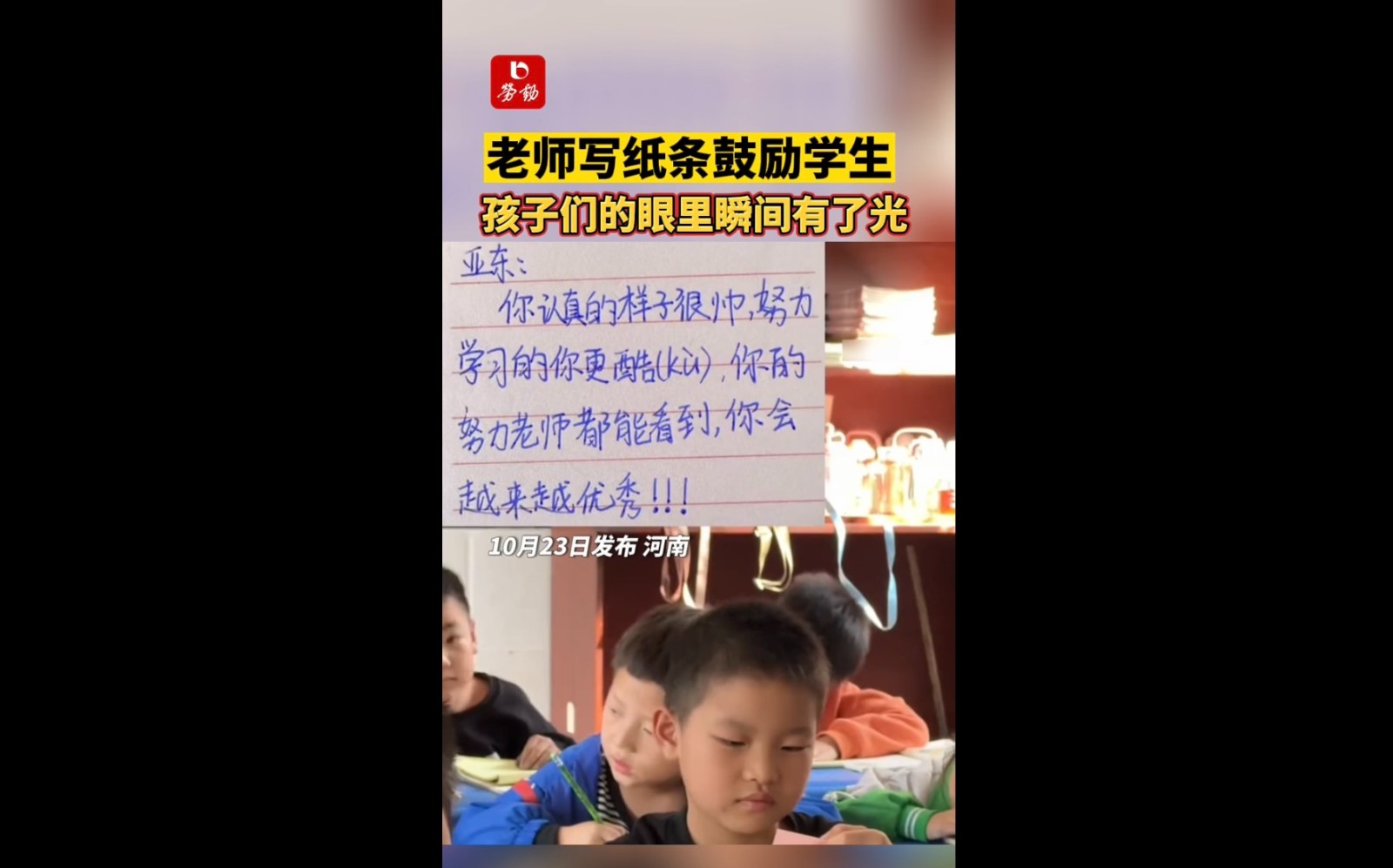 老师写纸条鼓励学生,孩子们的眼里瞬间有了光