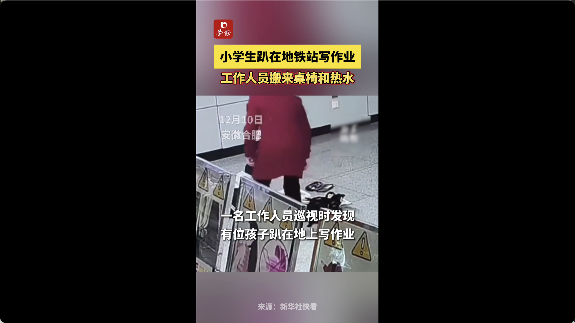 小学生趴在地铁站写作业,工作人员搬来桌椅和热水