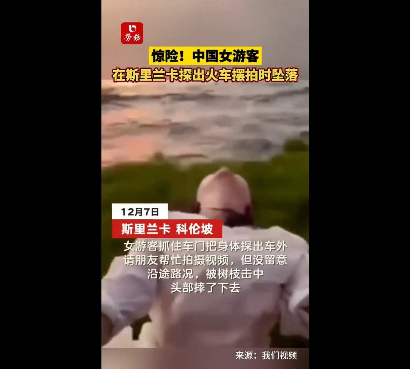惊险!中国女游客,在斯里兰卡探出火车摆拍时坠落